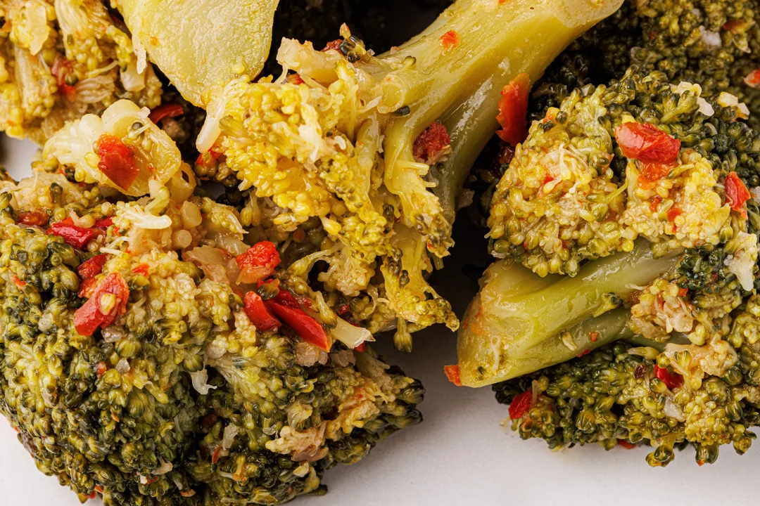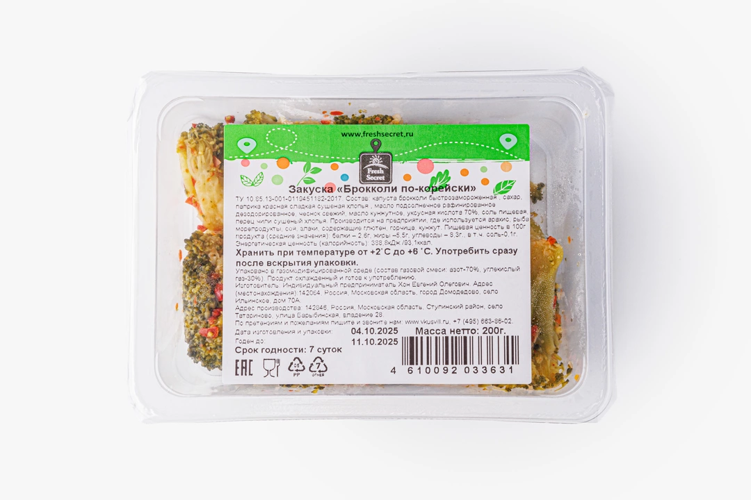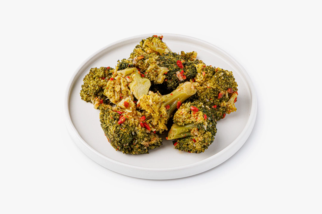 Яркая овощная закуска с брокколи в пряной корейской заправке. Сочетание чеснока, паприки и хлопьев чили создаёт насыщенный вкус с лёгкой остротой, а кунжутное масло добавляет характерный азиатский аромат. Брокколи остаётся хрустящей и сочной, сохраняя свежесть и яркий цвет. Отлично подойдёт как самостоятельная закуска или гарнир к мясным и рыбным блюдам.
