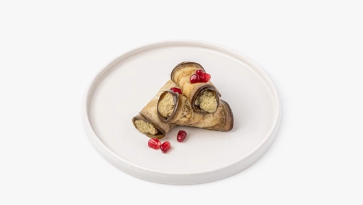 Мясистые ломтики баклажанов с чуть терпкой начинкой из перетёртых грецких орехов. Нежный вкус переливается приятной горчинкой, пряными оттенками и едва уловимой пикантностью чеснока. Эта грузинская закуска стала неотъемлемой частью всех праздников и съедается всегда в числе первых.