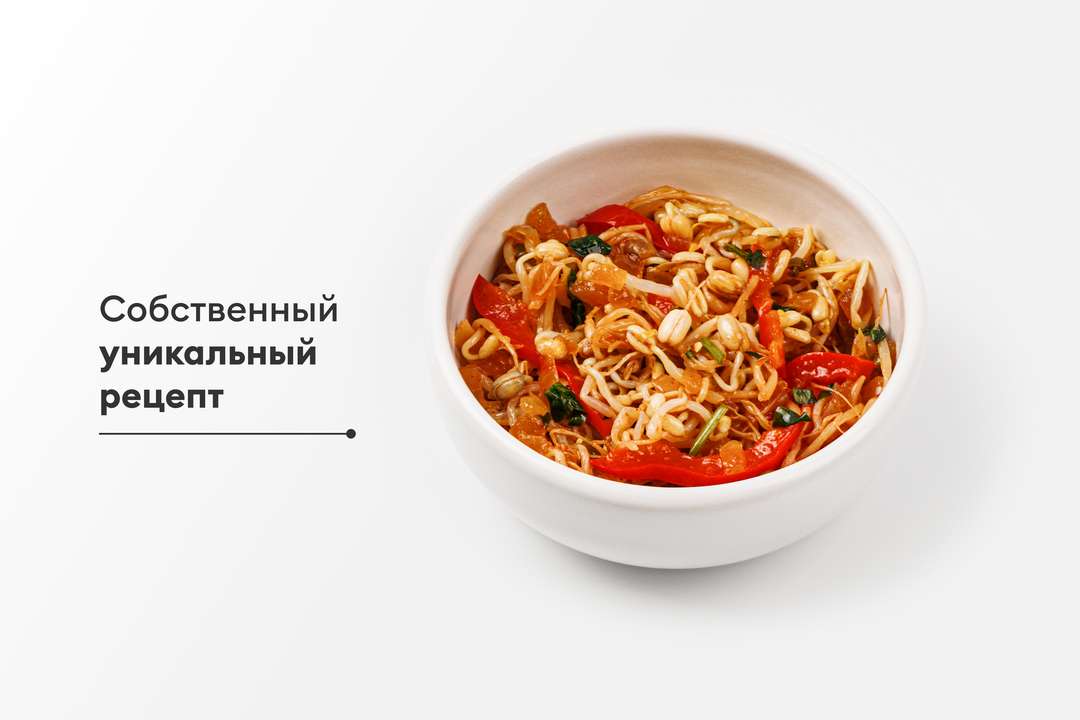 Слегка острая, с пряным ароматом и хрустящей текстурой — эта закуска в корейском стиле готовится из бланшированных проростков маша, сладкого перца и тушёного лука. Красный перец и паприка создают насыщенный вкус, а свежая кинза и соевый соус придают азиатские нотки. Остаётся только открыть упаковку и подать как гарнир к мясу, добавку к рису, лапше или в качестве самостоятельной закуски.