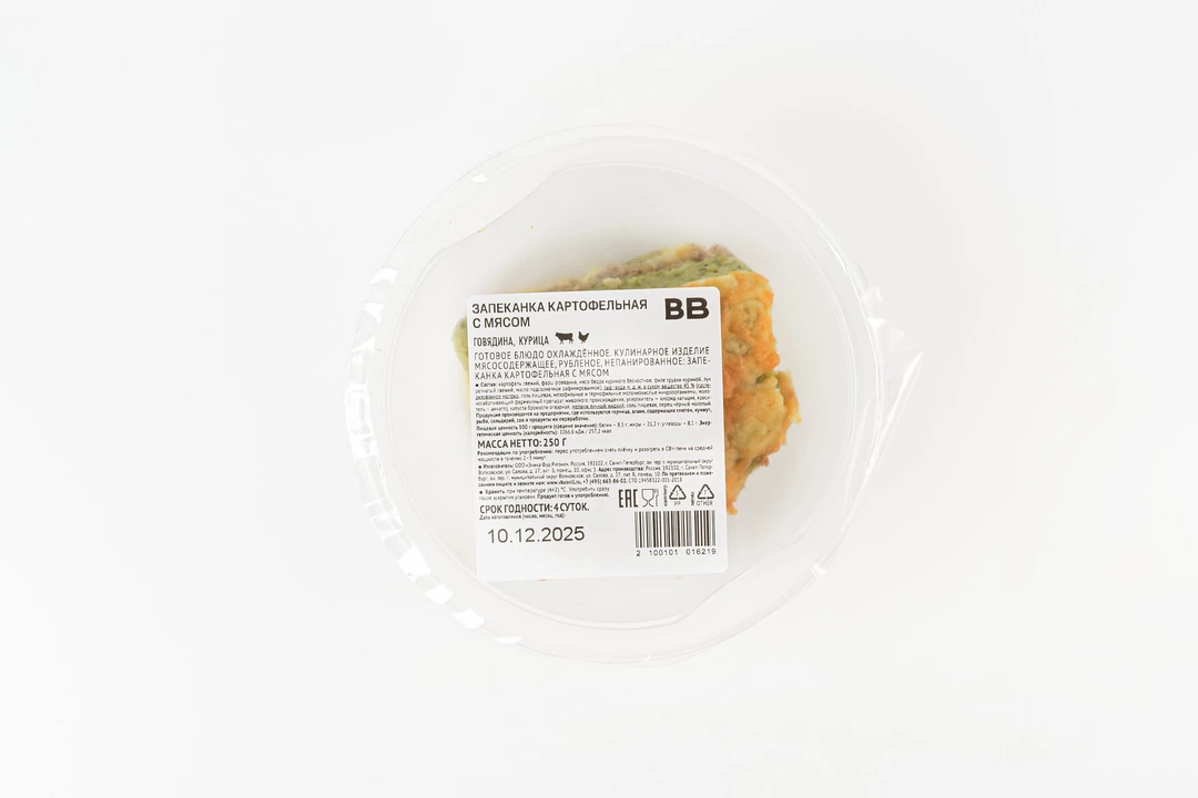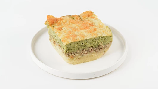 Сытная картофельная запеканка с мясным фаршем и брокколи — готовое блюдо, напоминающее домашнюю кухню. Нежный картофель сочетается с фаршем из говядины и курицы, обжаренным с луком. Брокколи добавляет лёгкость текстуре и свежесть, а растопленная гауда создаёт аппетитную золотистую корочку. Запеканка готова — её нужно лишь разогреть в духовке или микроволновке, чтобы сыр снова стал тягучим, а картофель — мягким. Подойдёт для обеда или ужина, когда хочется чего-то простого и вкусного.