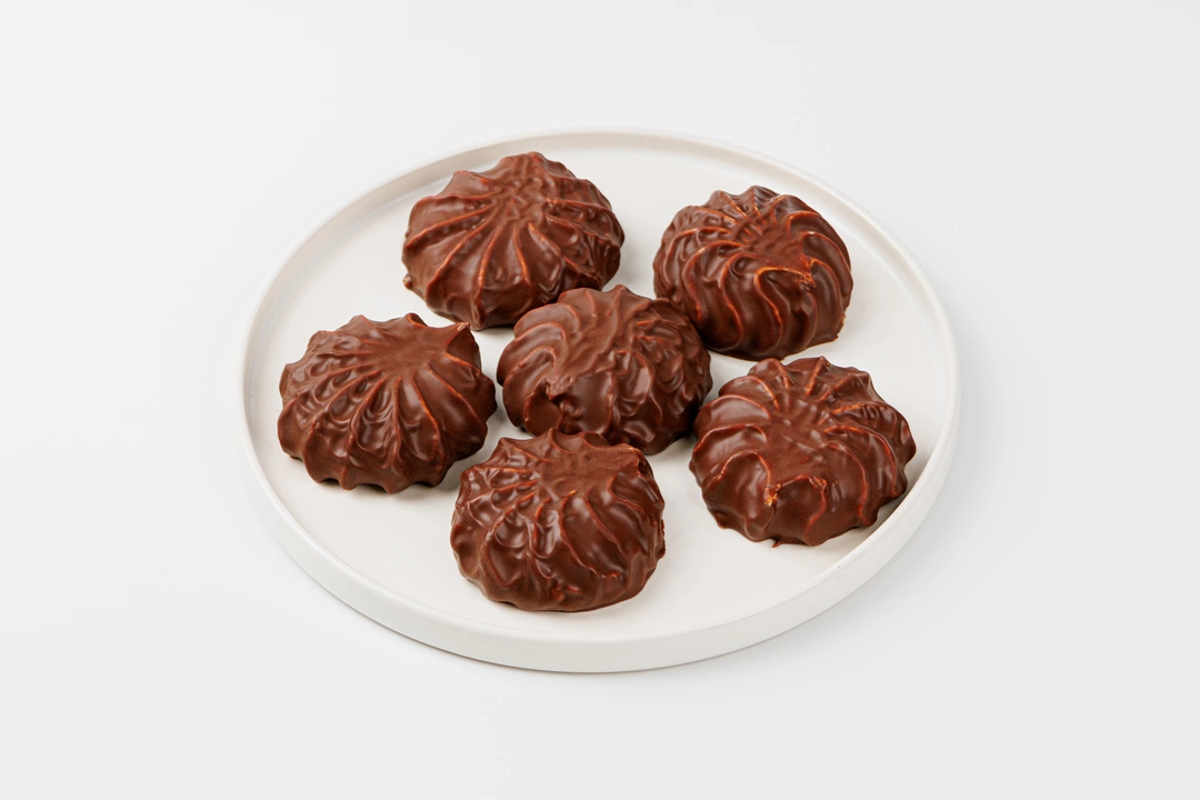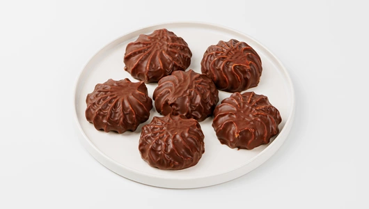 Воздушный десерт из кокосового пюре, тщательно взбитого с яичным белком и патокой. Нежный, с тонкими тропическими нюансами и хрусткой шоколадной обливкой. Каждая зефирка — в индивидуальном фантике: удобно положить в вазочку на кухне или захватить несколько штук с собой.
