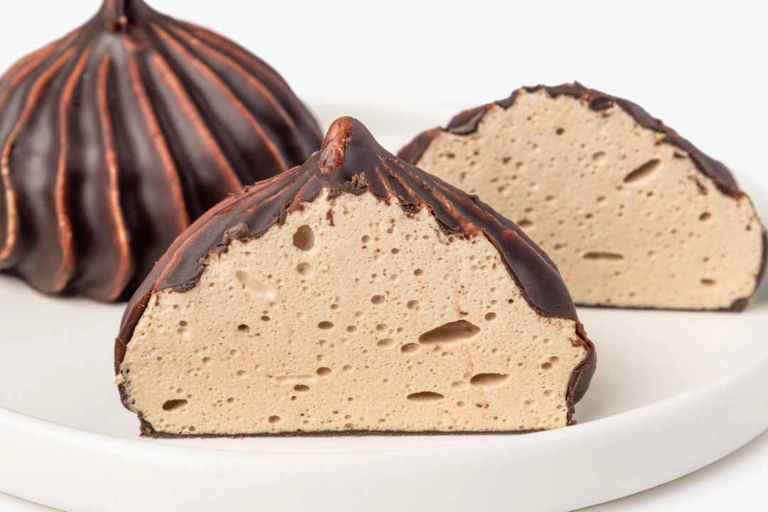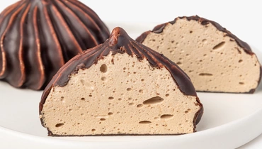 Необычный зефир в шоколадной глазури понравится тем, кто избегает продуктов животного происхождения, но не хочет отказываться от любимых десертов. Вместо яичных белков мы использовали аквафабу — отвар из нута сублимационной сушки. Карамельную сладость лакомству придают кокосовый сахар и сироп топинамбура. Зефир хорошо сочетается с растительным молоком и кофейными напитками.