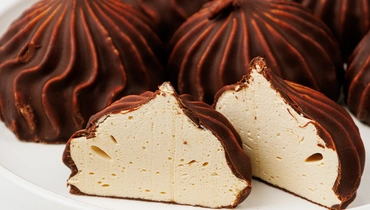 Веганский зефир с облачной текстурой, дразнящим ароматом и сладким вкусом, в котором звучит дуэт ванильных и шоколадных нот. Яйца, без которых не обходится классическая рецептура, мы заменили аквафабой — отваром из бобовых круп. Вместо белого сахара взяли кокосовый, а также сироп топинамбура. Эти два ингредиента придают лакомству необычные карамельные оттенки, которые редко встретишь у обычного зефира. А ещё у лакомства пониженная калорийность, поэтому оно подойдёт не только веганам, но и тем, кто тщательно следит за своим рационом.