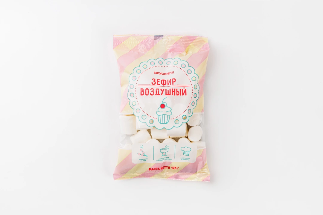 Этот зефир полностью оправдывает своё название «воздушный». Он просто тает во рту! У лакомства сладкий, но не приторный вкус с приятным ванильным послевкусием. Нежный зефир отлично подходит для сладкого перекуса, фондю, а также может использоваться в выпечке.