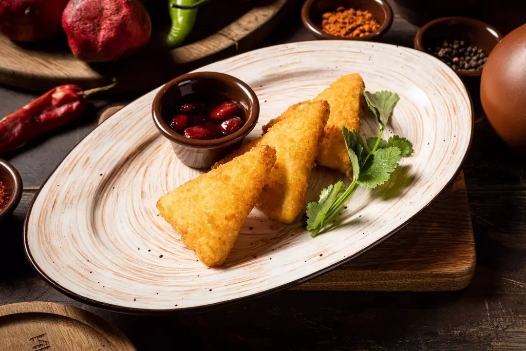 Жареный сулугуни с кизиловым вареньем