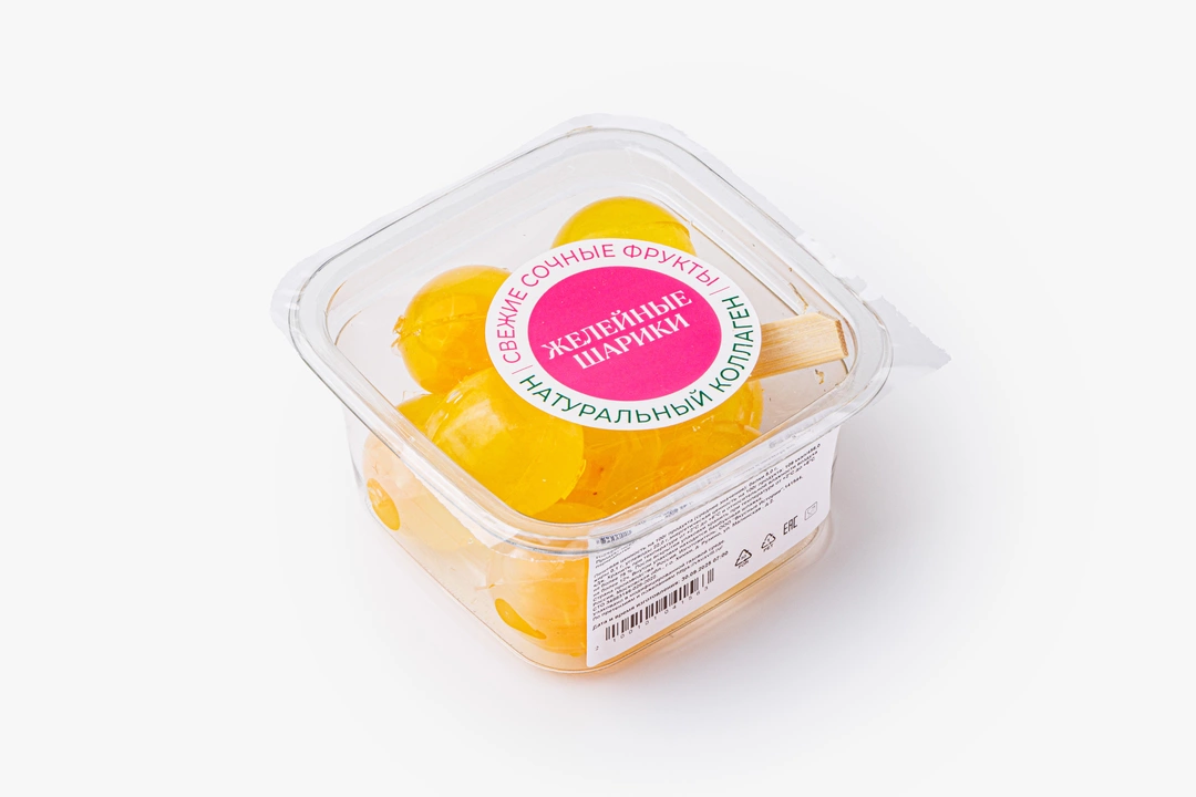 Лёгкое лакомство в виде упругих желейных шариков с натуральным фруктовым соком. Десерт получается ярким, свежим и в меру сладким. Мы добавили в упаковку деревянную шпажку, чтобы вы смогли перекусить в любое время и в любом месте. А ещё такое желе украсит фруктовые салаты и домашние десерты.
