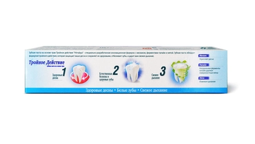 Зубная паста на основе трав Тройное действие Himalaya - специально разработанная инновационная формула с мисваком, ферментами папайии мятой. Зубная паста обладает формулой тройного действия, которая защищает ваши деесна и сохраняет их здоровыми, отбеливает зубы и дарит вам свежее дыхание. Мисвак укрепляет десна, Папайя - натуральные ферменты папайи удаляют поверхностные пятна, Мята освежает дыхание. Страна производитель-ОАЭ