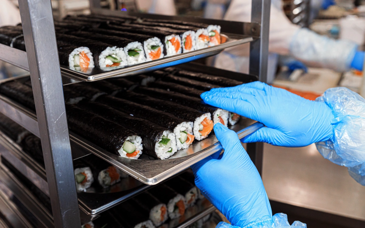 2,5 тонны правильно приготовленного риса и около 1,5 тонн рыбы используют ежедневно на производстве при приготовлении роллов.