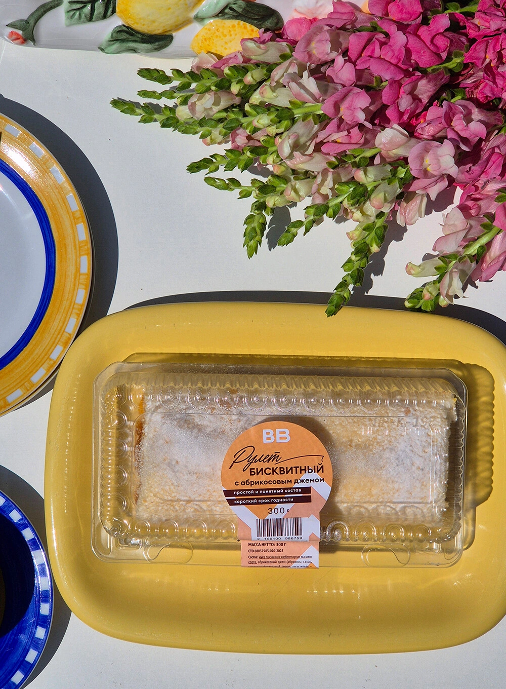 Думаю, что всё дело в простоте: воздушный, нежнейший бисквит со щедрым слоем ароматного, сладкого и яркого абрикосового джема. Состав короткий и понятный.