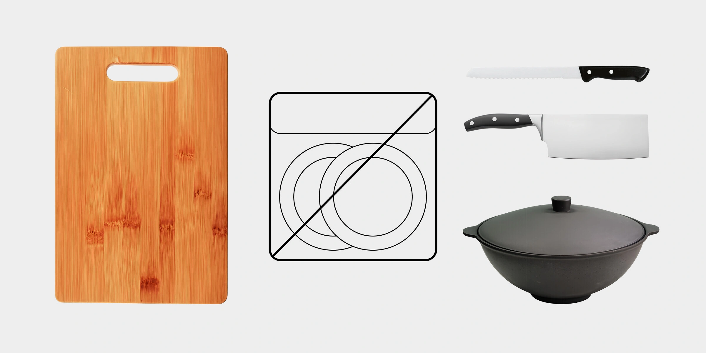 - Деревянные предметы. Тарелки, пиалы, ложки, разделочные доски и другие кухонные принадлежности, полностью состоящие из древесины или с элементами из этого материала (например, ножи с деревянной рукоятью), не следует мыть в ПММ. Длительное воздействие горячей воды и пара вызывает набухание дерева, что может привести к изменению формы изделий и появлению трещин на них.