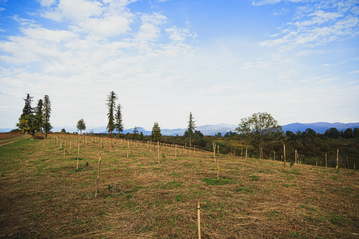 Когда сезон подойдёт к концу, начнутся другие работы. Каждый новый саженец нужно будет укутать на зиму, для этого в саду подготовят несколько тысяч бамбуковых палок (на одно молоденькое деревце идёт по три опоры), после наденут чехлы из бязи, чтобы новые посадки не погибли.