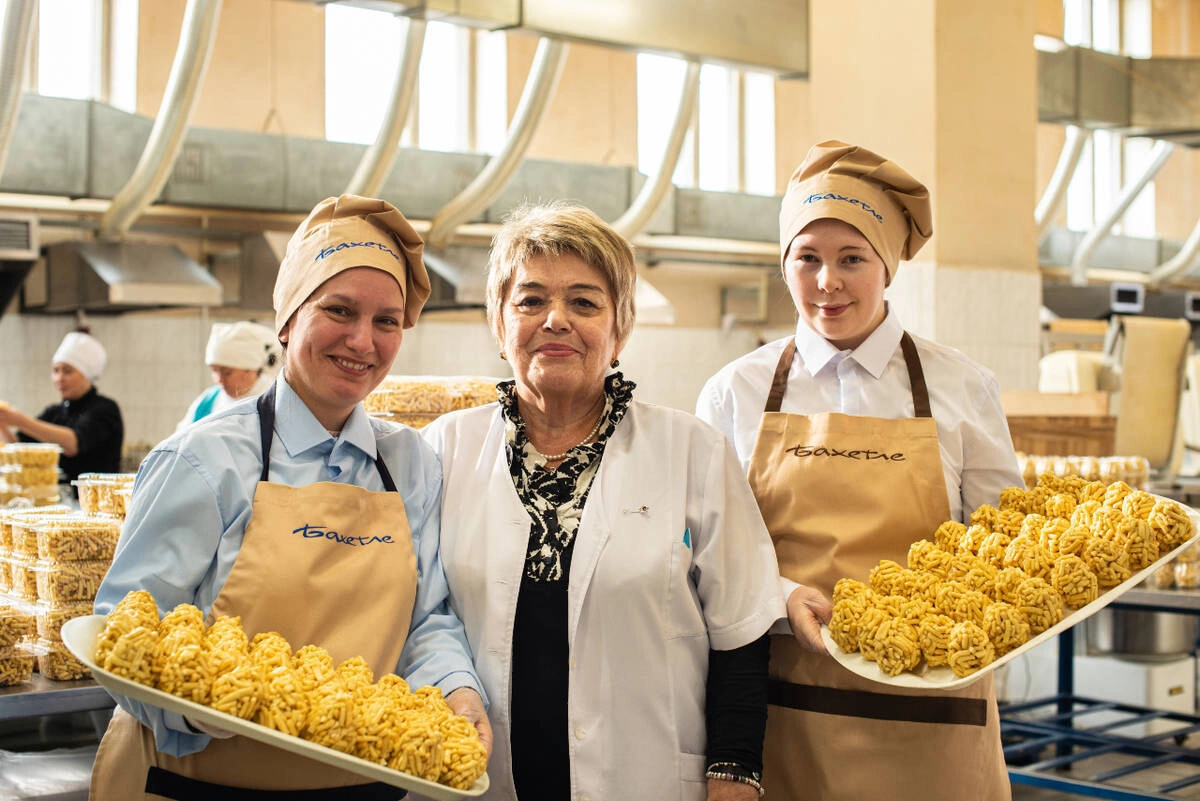 В каждой татарской семье свой рецепт чак-чака: всего несколько ингредиентов, но каким разным получается вкус. В «Бахетле» тоже собственный взгляд на эту сладость. Рецепт десерта создала Фарида Давидова и пристально следит за качеством каждой партии по сей день.