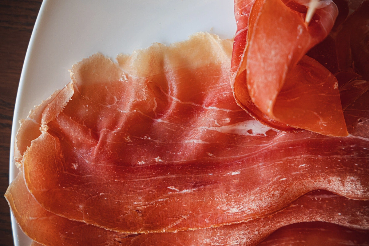 А в Италии погода в целом соответствует средиземноморскому климату, где влажности больше, а температура воздуха ниже. Поэтому свиной окорок всегда получался более сочным и даже немного влажным. Также у прошутто светлее оттенок, а мясо — с наибольшим количеством прожилок.