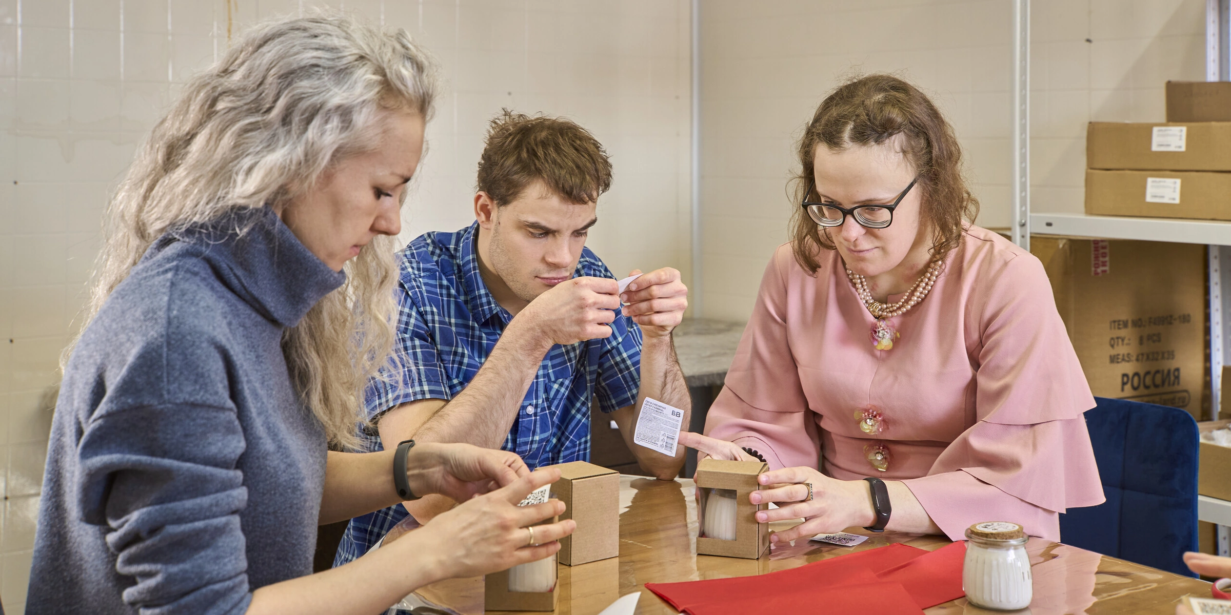 В четырёх наших инклюзивных мастерских более 150 работников с трудовой и социальной инвалидностью получают зарплату и активно участвуют в производственном процессе под руководством кураторов и тьюторов. Здесь каждый день кипит работа — наши мастера создают изделия из керамики, текстиля, а также восковые и соевые свечи, мыло и открытки. Поэтому, приобретая эти изделия, вы не только получаете красивый предмет, но и поддерживаете работу фонда, помогая изменить чью-то жизнь к лучшему».