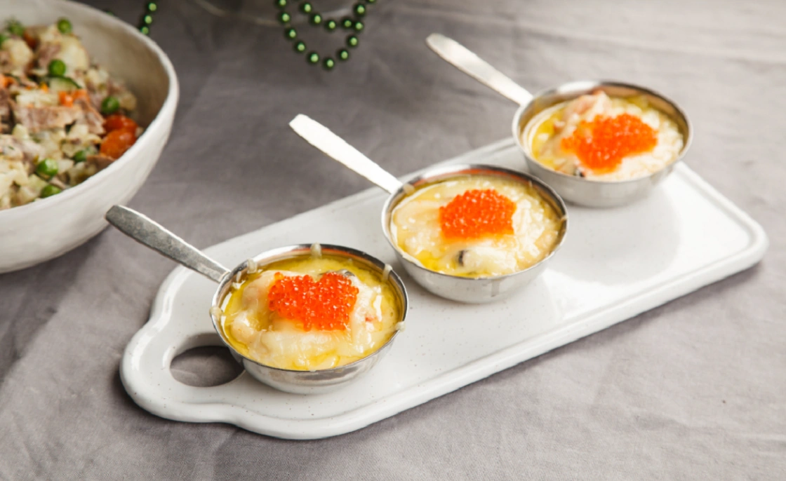 Жюльен из морепродуктов с икрой,