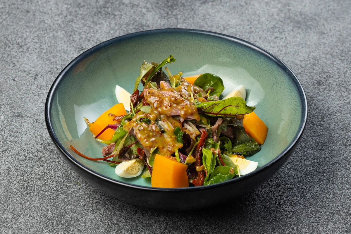 Так же, как в «Тюбетее», здесь экспериментируют с главной татарской лепёшкой кыстыбыем и кладут в неё мясо или рыбу, овощи или грибы. Кроме них здесь можно попробовать традиционный пирог с говядиной, картофелем и мясом бэлеш, пирог губадия, который сопровождает все важные этапы жизни татар, и главный татарский десерт из теста и мёда — чак-чак.
