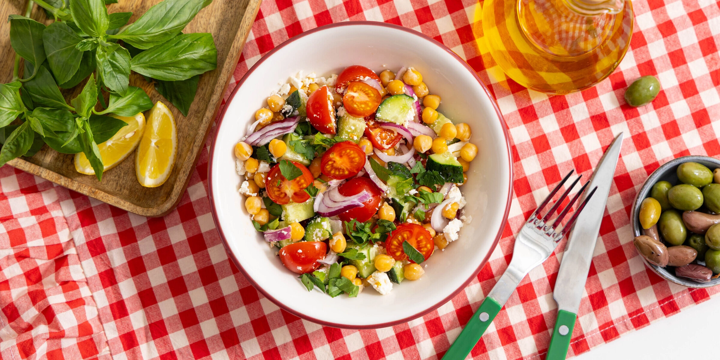 Лёгкий, свежий, но при этом сытный — и всё благодаря нуту. Этот салат запросто заменит полноценный ужин или станет отличным перекусом среди дня.