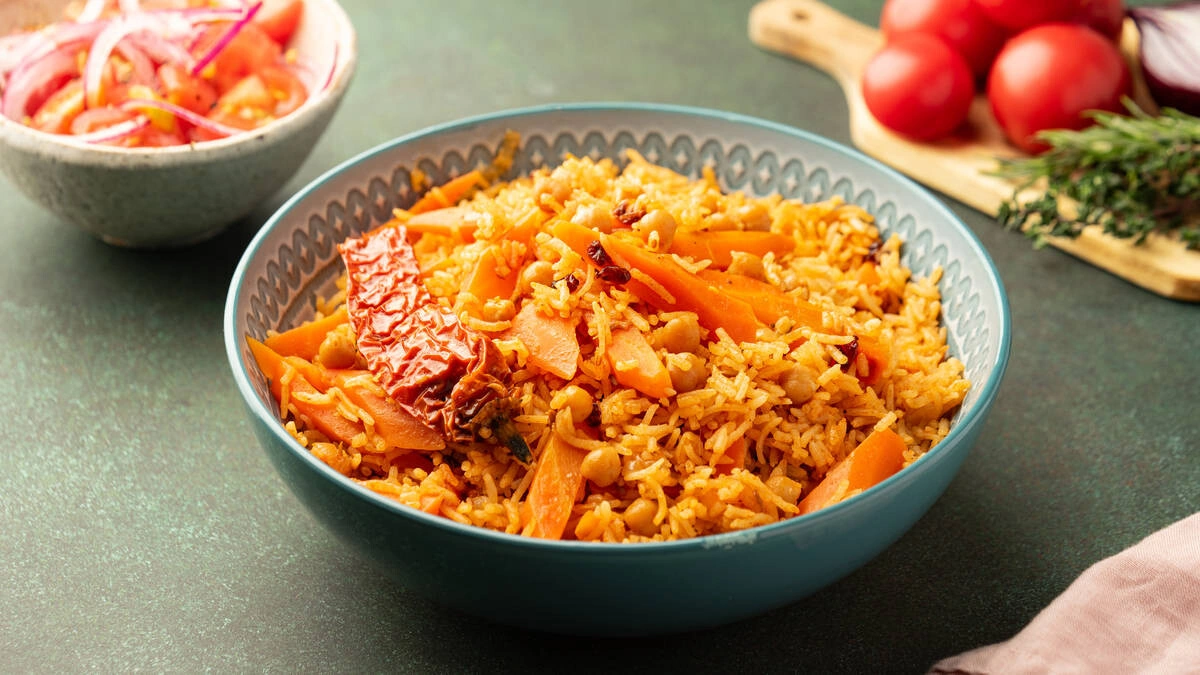 Нут вместо мяса, традиционные овощи и щедрая порция специй — вот он, вегетарианский плов, от которого невозможно оторваться. Сытный, ароматный и очень вкусный.
