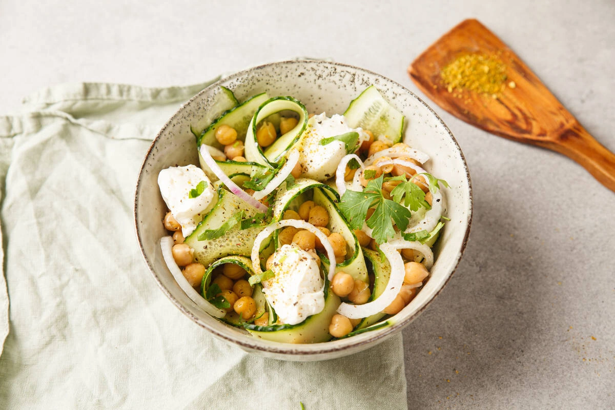 Лёгкий салат с огурцами и нутом