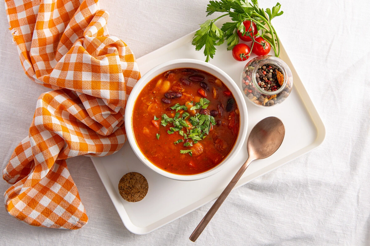 Сезон холодов не за горами, а значит, самое время обратить внимание на этот рецепт! Насыщенный томатный суп с фасолью и пикантными колбасками родом из Испании согреет в непогоду и надолго зарядит энергией.