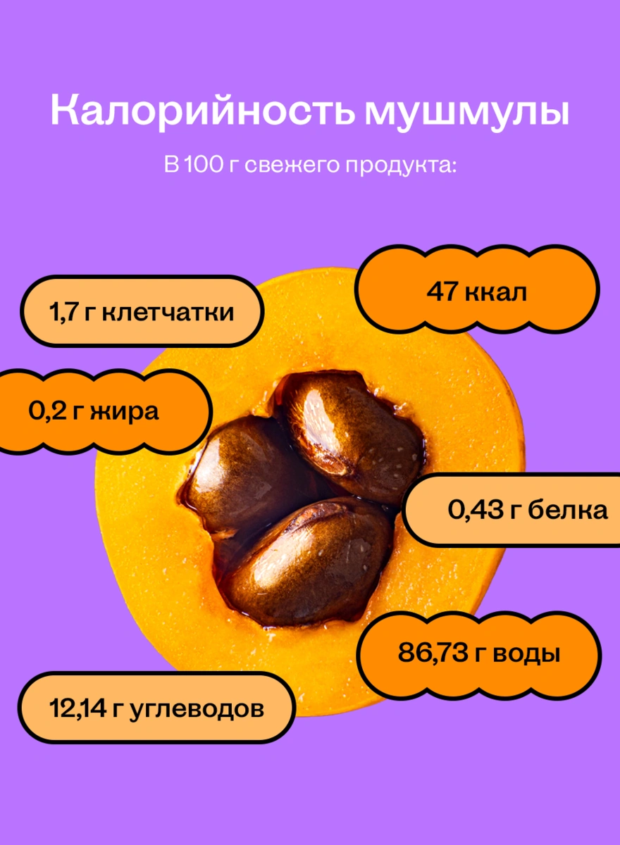 Что касается КБЖУ, в 100 г свежей мушмулы 47 ккал, а также: