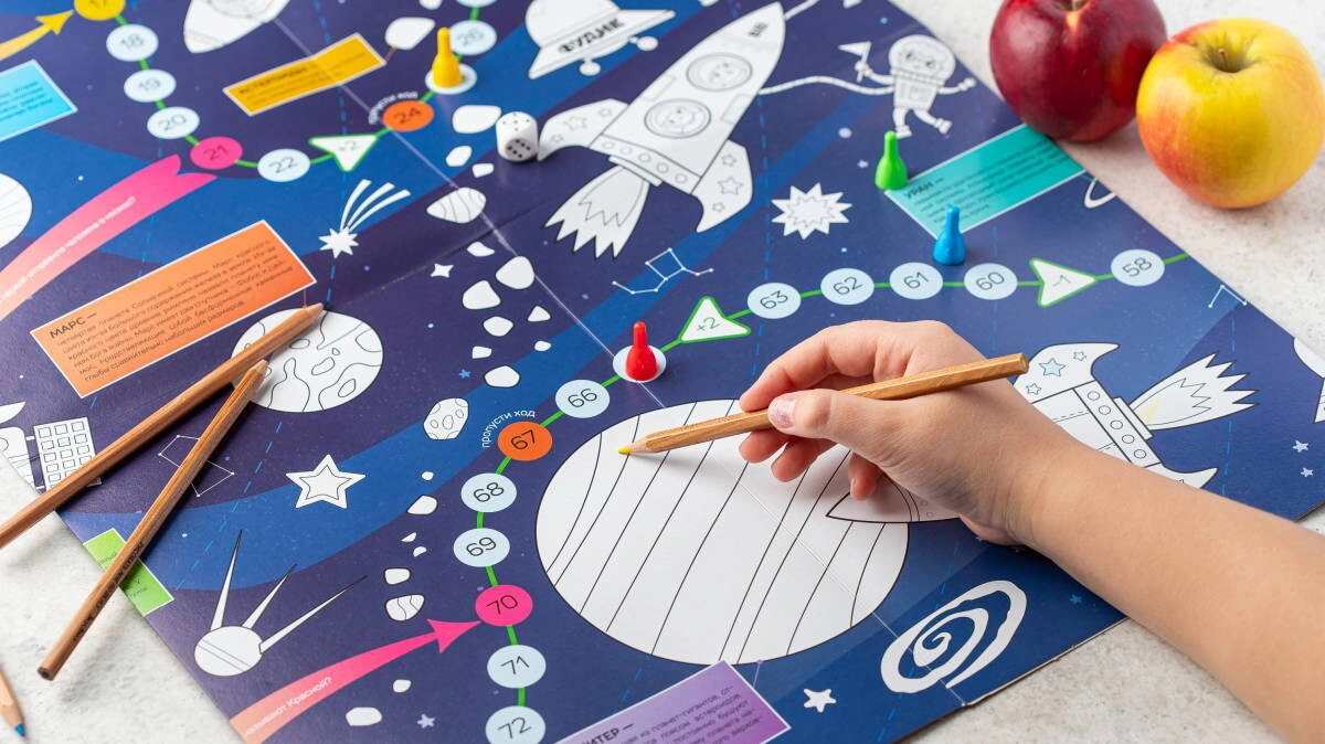Отправиться с детьми в космос несложно. Один из вариантов — игра-раскраска «Космос» от ВкусВилла. «Играли с ребенком (3 г 10 мес) весь вечер, начали с раскрашивания, много познавательной информации», — пишет Мила на нашем сайте.
