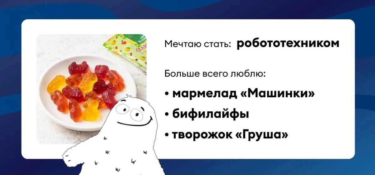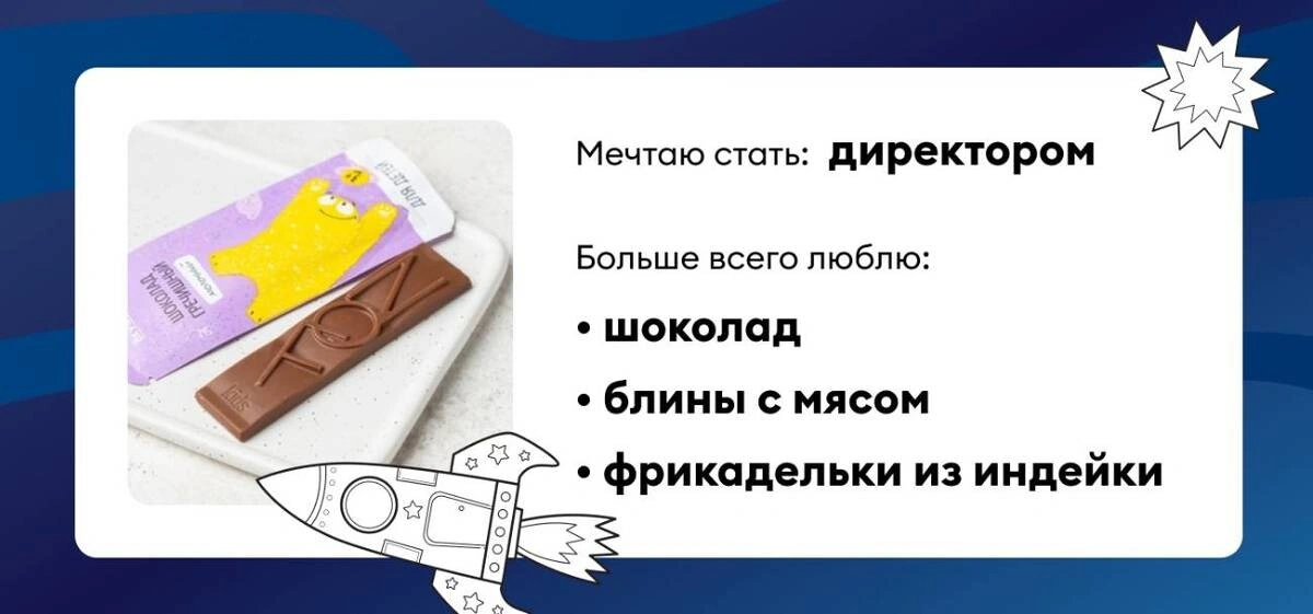 Самой популярной профессией среди детей стал директор, но преимущество неявное — ответы очень разные. Собрали в карточки: посмотрите, чем любят себя побаловать будущие космонавты, ветеринары и программисты.