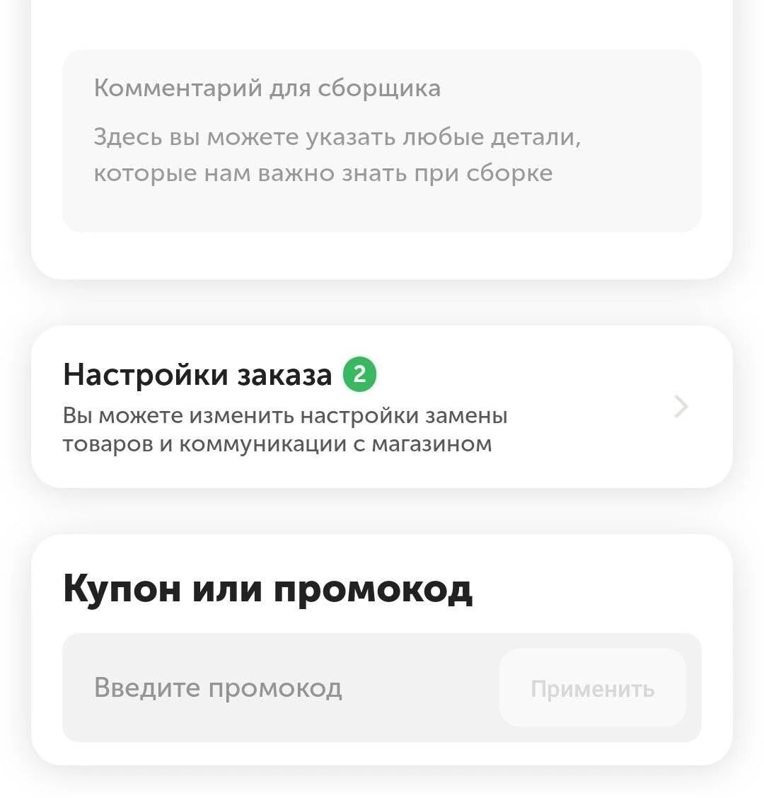Напишите его в поле «Комментарии к заказу». Например, «не звонить в дверь, ребёнок спит». Или любые другие пожелания, о которых нам важно знать.