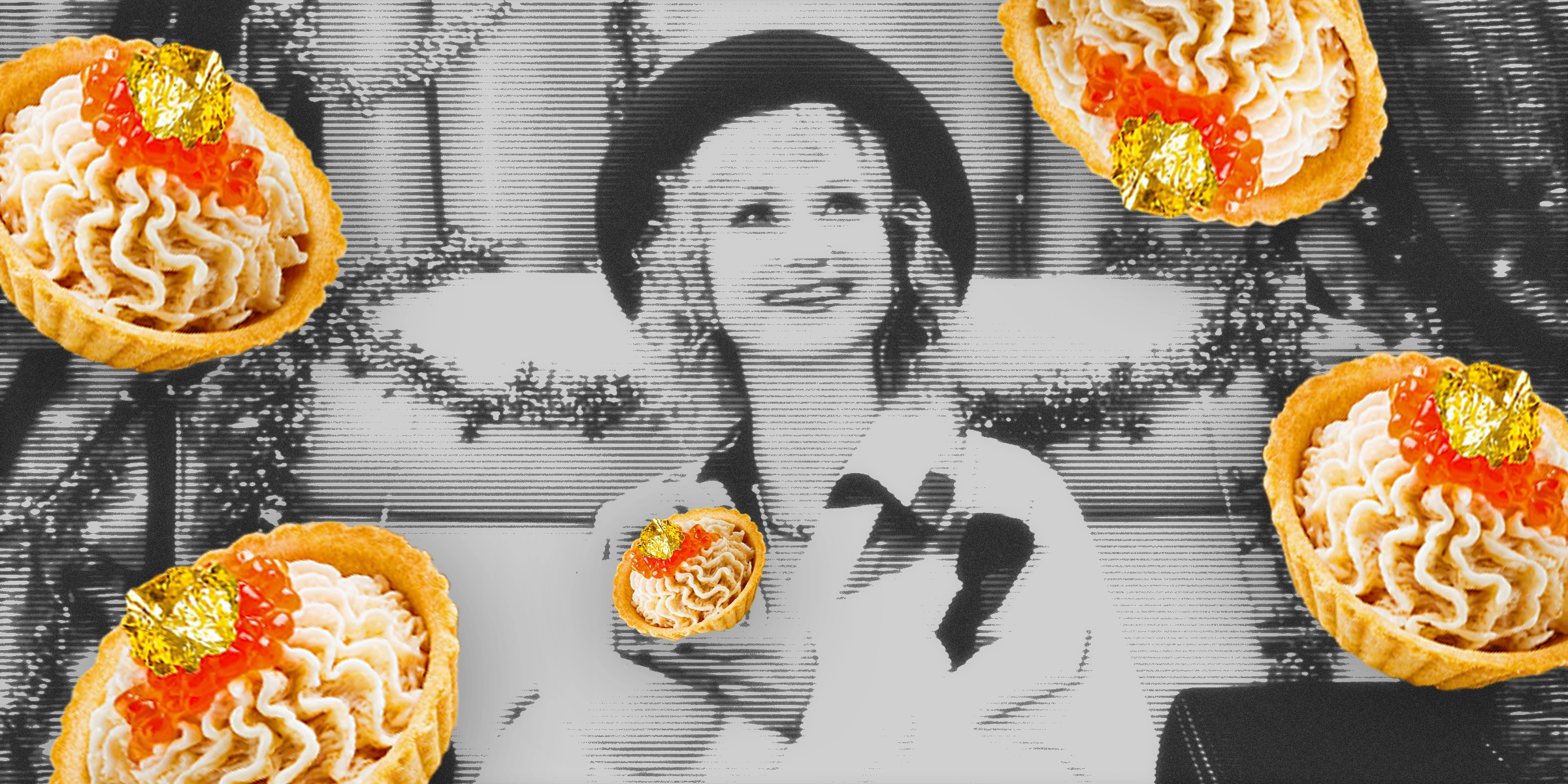 Закуска «Жаба Аркадьевна»: тарталетка с трендовым икорным маслом, красной икрой и съедобным золотом. Пафосно, дорого и слегка невротично — точная кулинарная копия главной антагонистки.