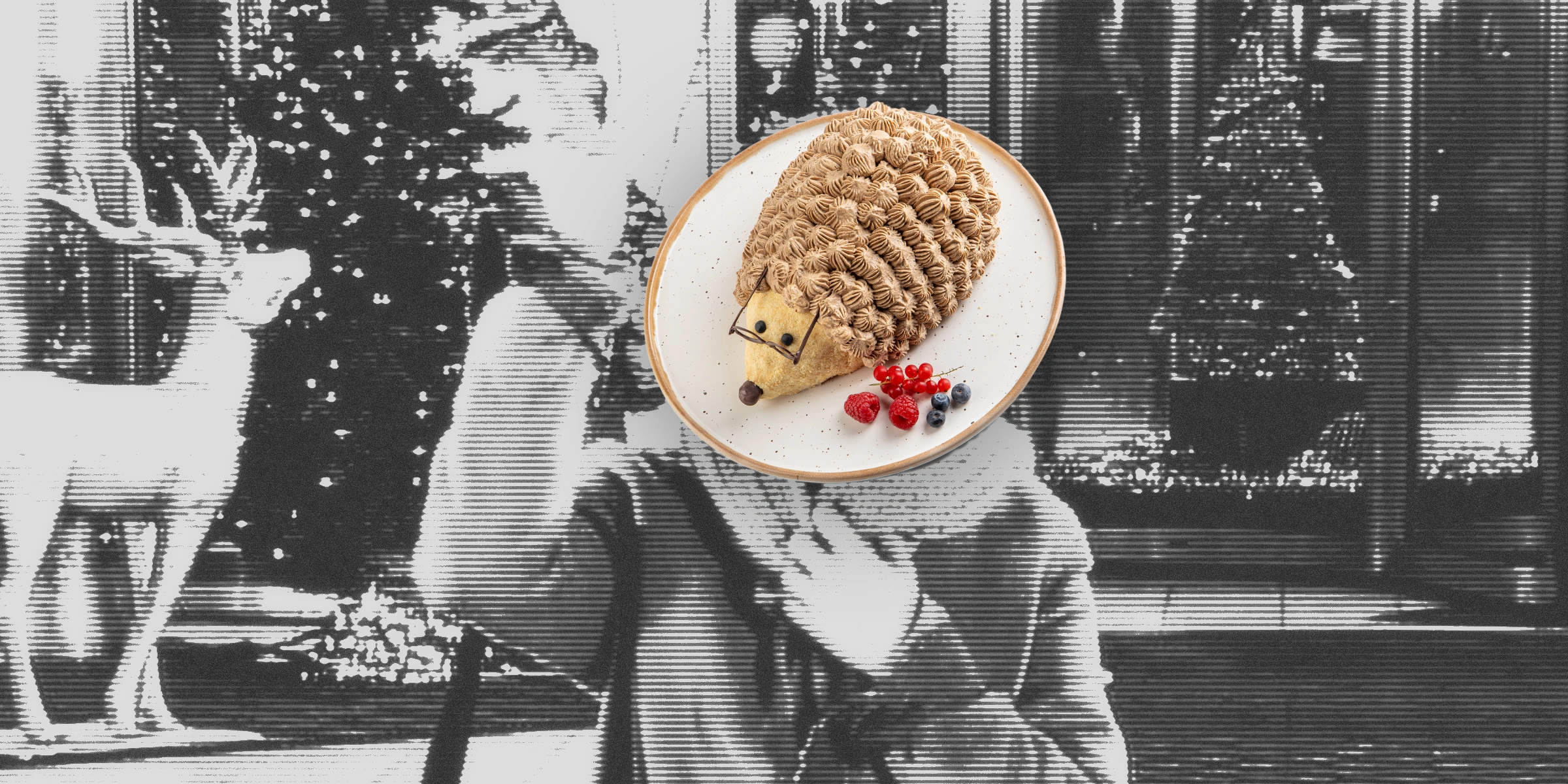Сладкое мы тоже не обошли стороной! Торт «Ёжик Катя Пушкарёва». Его внешность обманчива и даже нарочито проста. Но внутри скрывается сложная, глубокая и бомбическая начинка. Настоящий сюрприз для тех, кто не судит по первому впечатлению. Как и Катя Пушкарёва — не сразу разглядишь, какой шедевр.