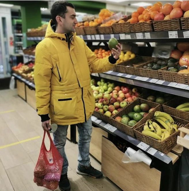- Сфотографируйтесь в магазине с экотарой и элементом манго-лука.