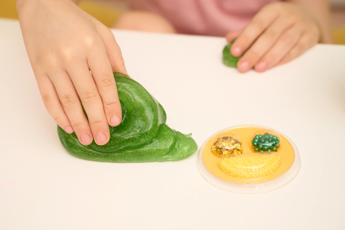 Основой слаймов в большинстве случаев является обычный канцелярский клей. Это безопасный продукт: с ним дети имеют дело с раннего возраста, создавая творческие поделки. Однако, чтобы из клея сделать слайм, в него нужно добавить активатор (тетраборат натрия), который позволит загустить массу. В состав слаймов могут входить также натуральные ароматизаторы, красители и разнообразные декоративные элементы, например, блёстки, шармы и прочее.