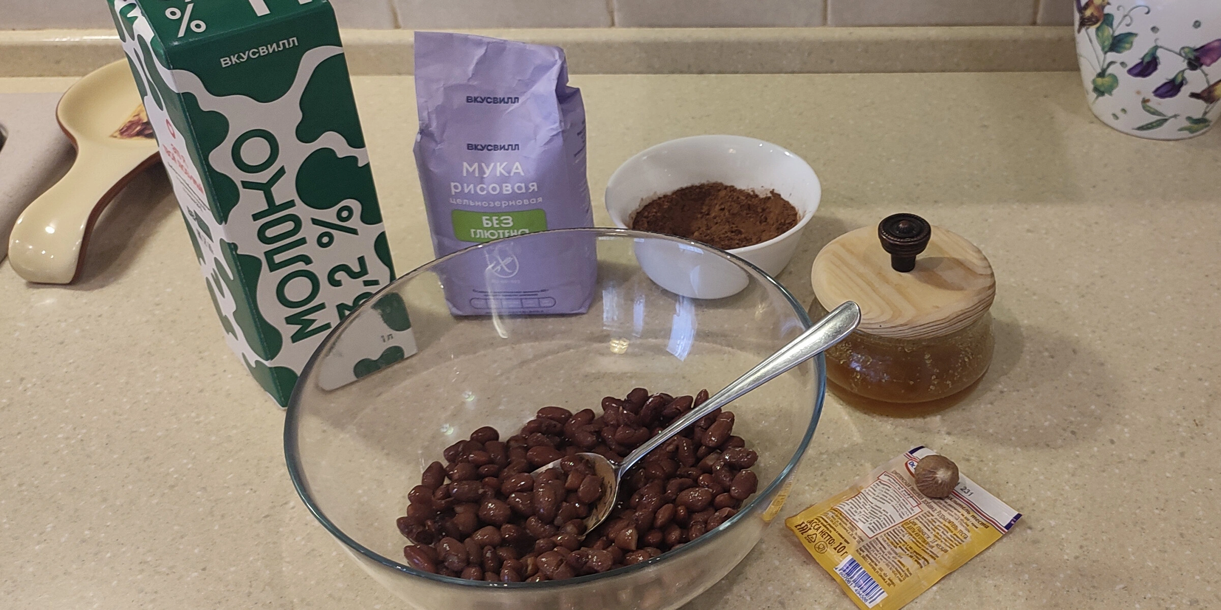 Приготовление такое же простое, как и в предыдущем рецепте: фасоль нужно пробить блендером, добавить молоко, а затем все сыпучие ингредиенты и вымесить тесто до однородности. Если мёд слишком густой, то стоит слегка растопить его на водяной бане, чтобы в тесте не болталась липкая блямба.