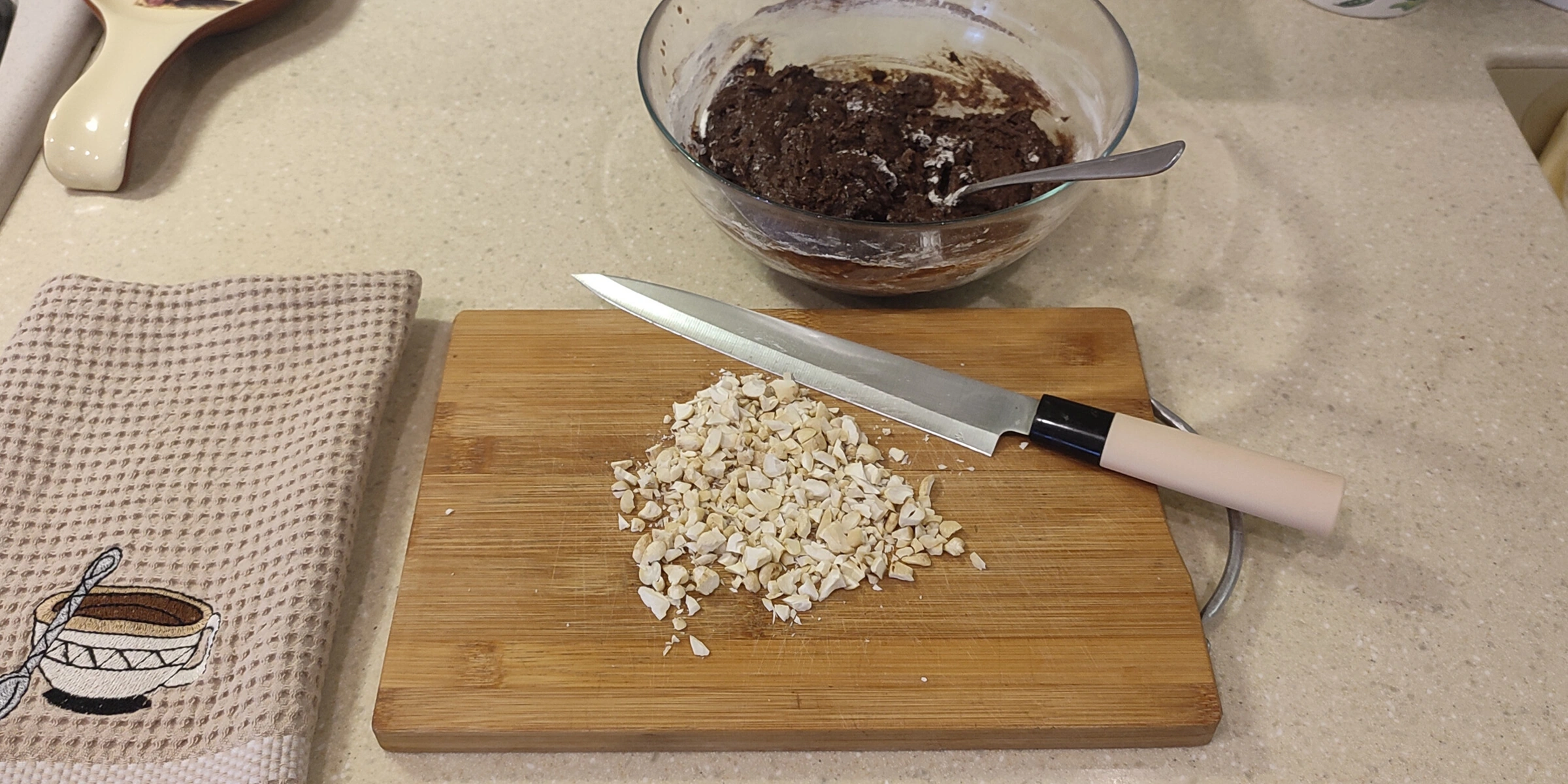 Дальше всё просто: 3 стакана готовой фасоли без жидкости превратила блендером а в гладкое пюре, добавила банан, орехи и сахар и ещё раз взбила. Добавила остальные сыпучие ингредиенты и вымесила лопаткой, чтобы не осталось сухих комочков. Влила масло и ещё раз вымесила.