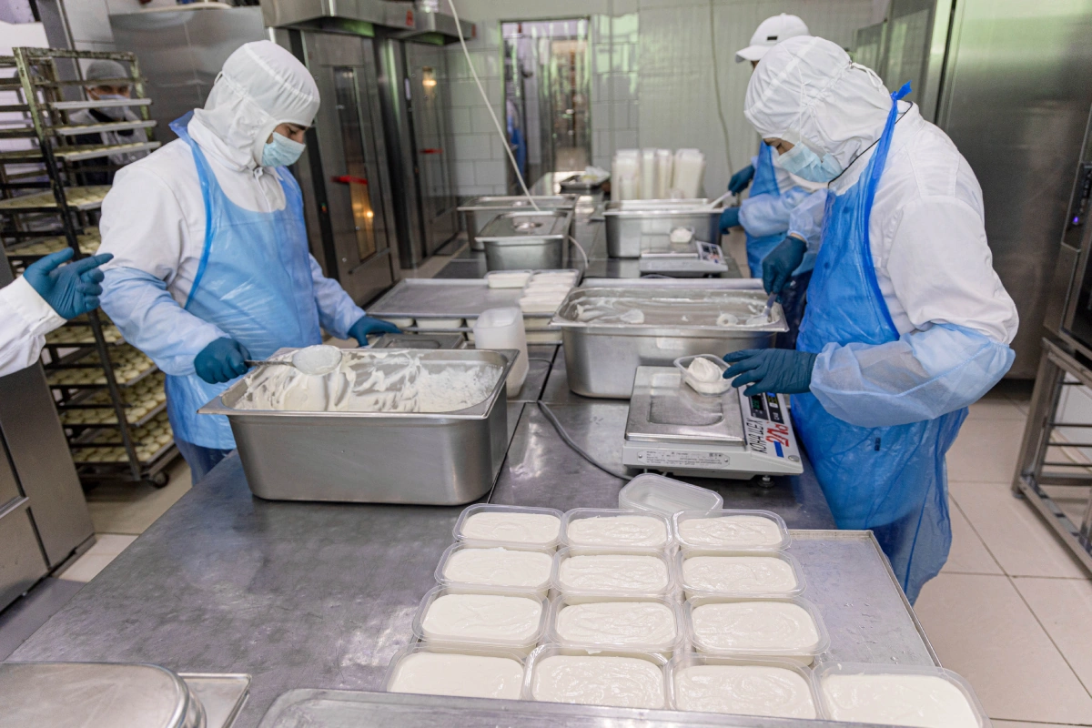 На производстве Андрея покупают творог разной жирности у поставщиков, проверенных технологами ВкусВилла. Для запеканки его обязательно смешивают: если готовить блюдо только из 5- или только из 9%-ного творога, на нём после выпекания появятся трещины. Консистенцию творога регулируют: если масса получается плотной и рассыпчатой, добавляют молоко, чтобы она стала кремообразной.