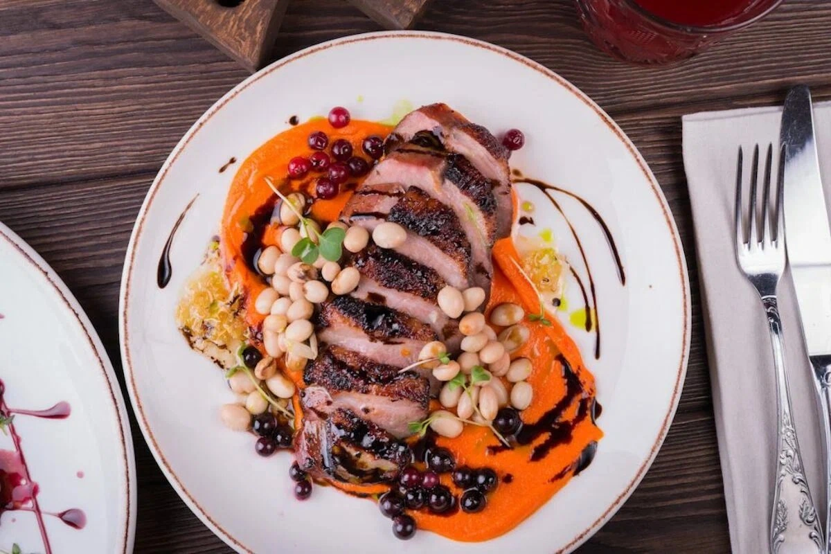 Три блюда, которые я бы посоветовал попробовать: ростбиф из оленя с картофельным ризотто, сугудай из муксуна, и десерт „Сибирский мишка“. В его составе — шоколад, еловое мороженое, кедровое молоко и конфитюр из брусники».