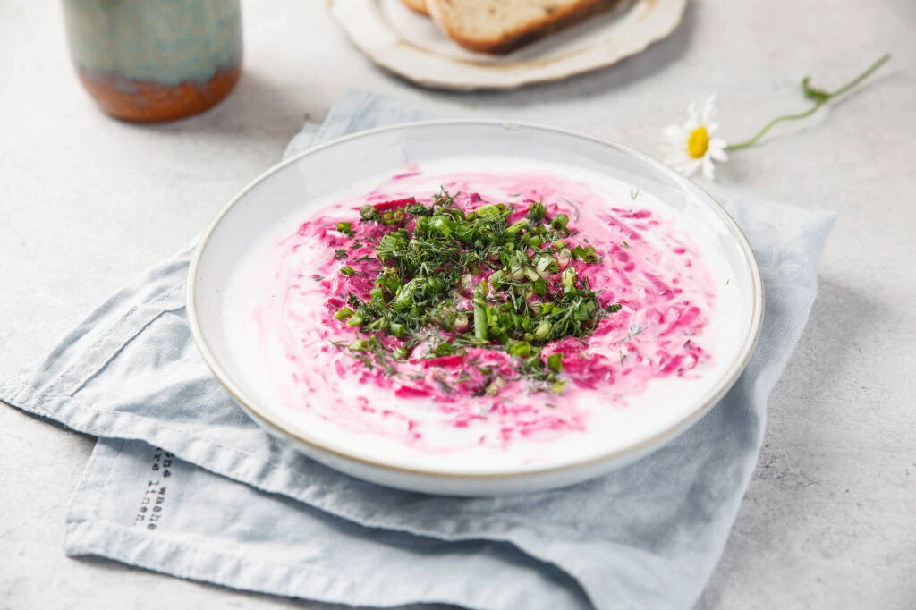 А для тех, кто любит окрошку на кефире, предлагаем попробовать кое-что новенькое — литовский свекольник! Если подать к нему отварной картофель, то можно больше уже ничего не готовить.