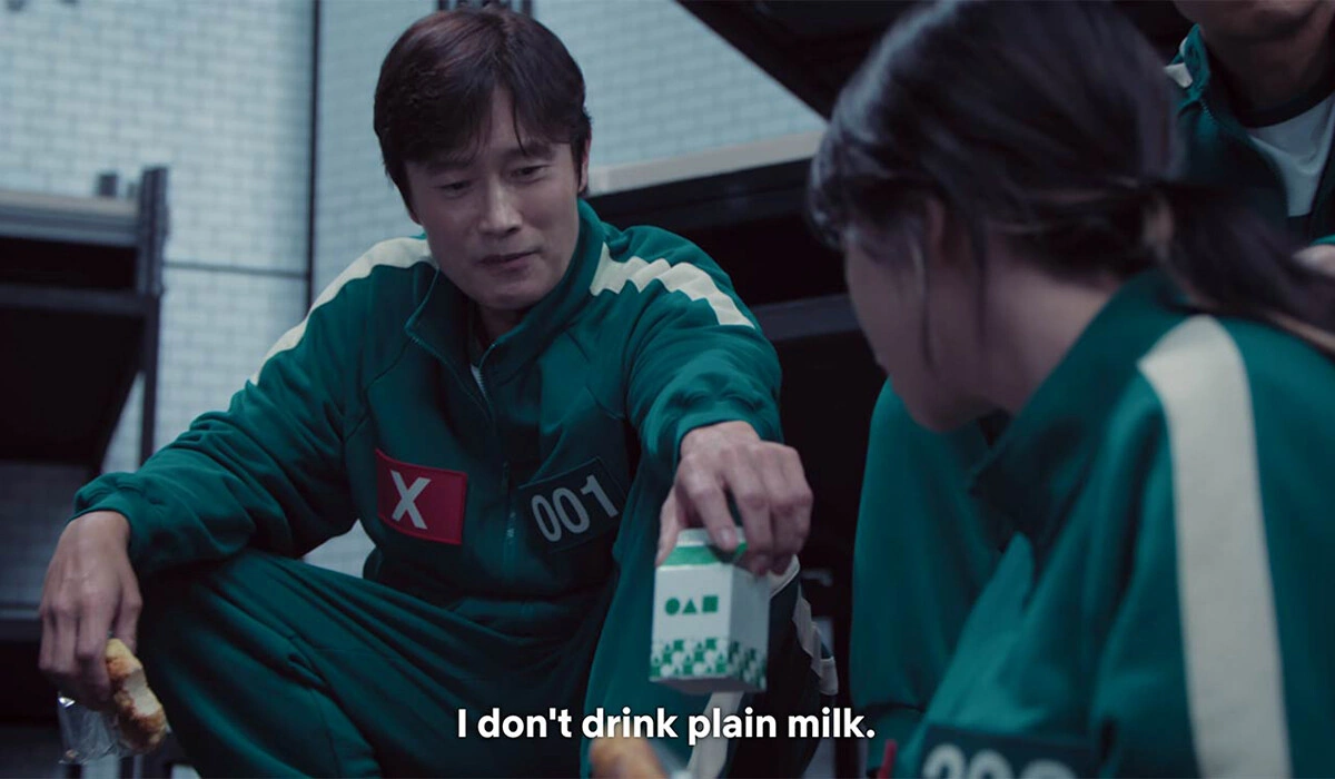 Кстати, в первом сезоне, который, как говорят авторы сериала, был создан чисто для корейской аудитории, молоко показано в маленьких бутылочках — в таком виде его продают в супермаркетах и подают детям в школьных столовых. Во втором сезоне оно уже в картонной упаковке — более привычной форме для западной аудитории, так как на тот момент «Игра в кальмара» получила мировую популярность.