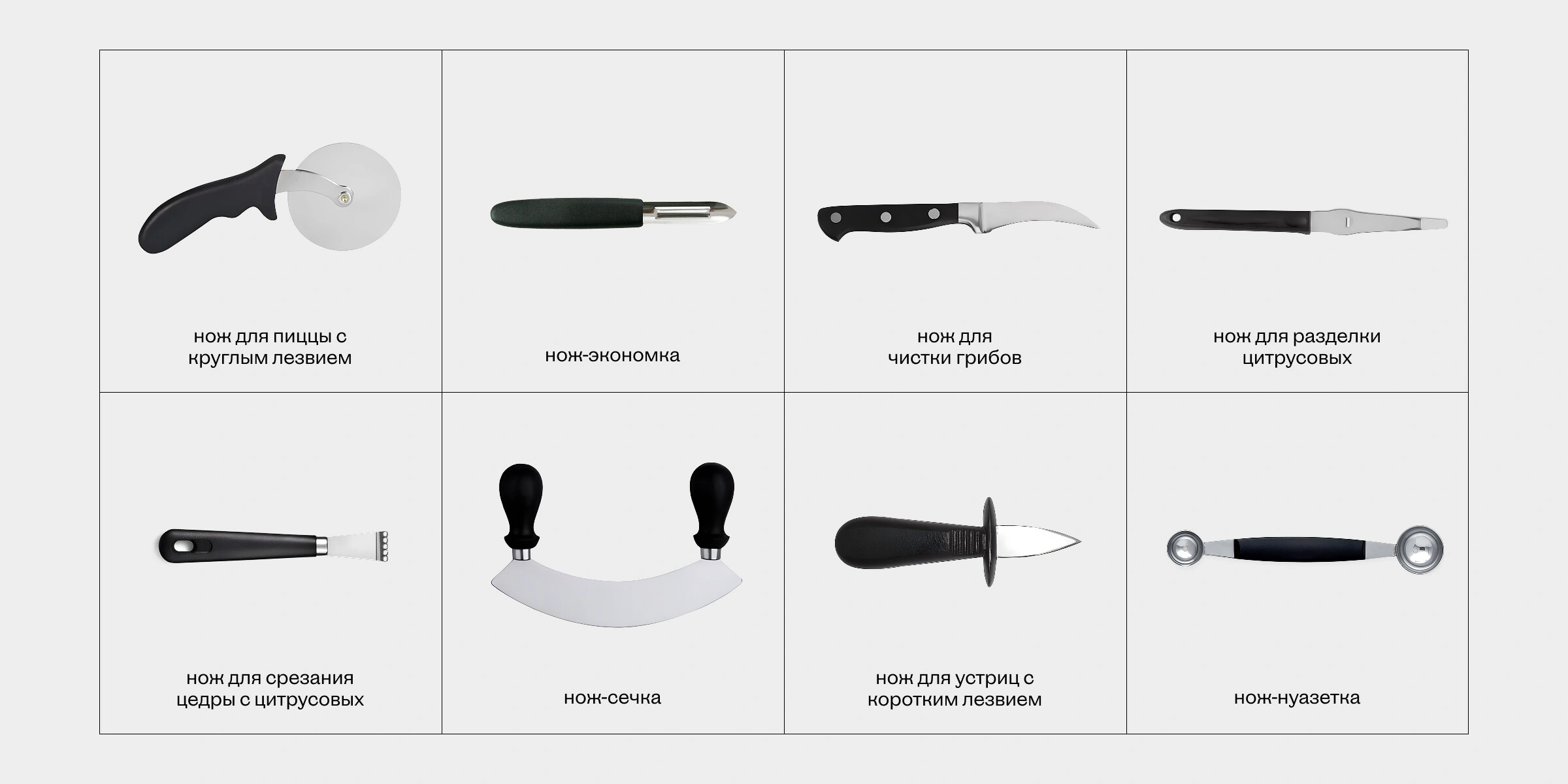 Ножи одинаковые по своей сути, но разные по форме, длине и ширине. Разбираемся, для чего нужен каждый.