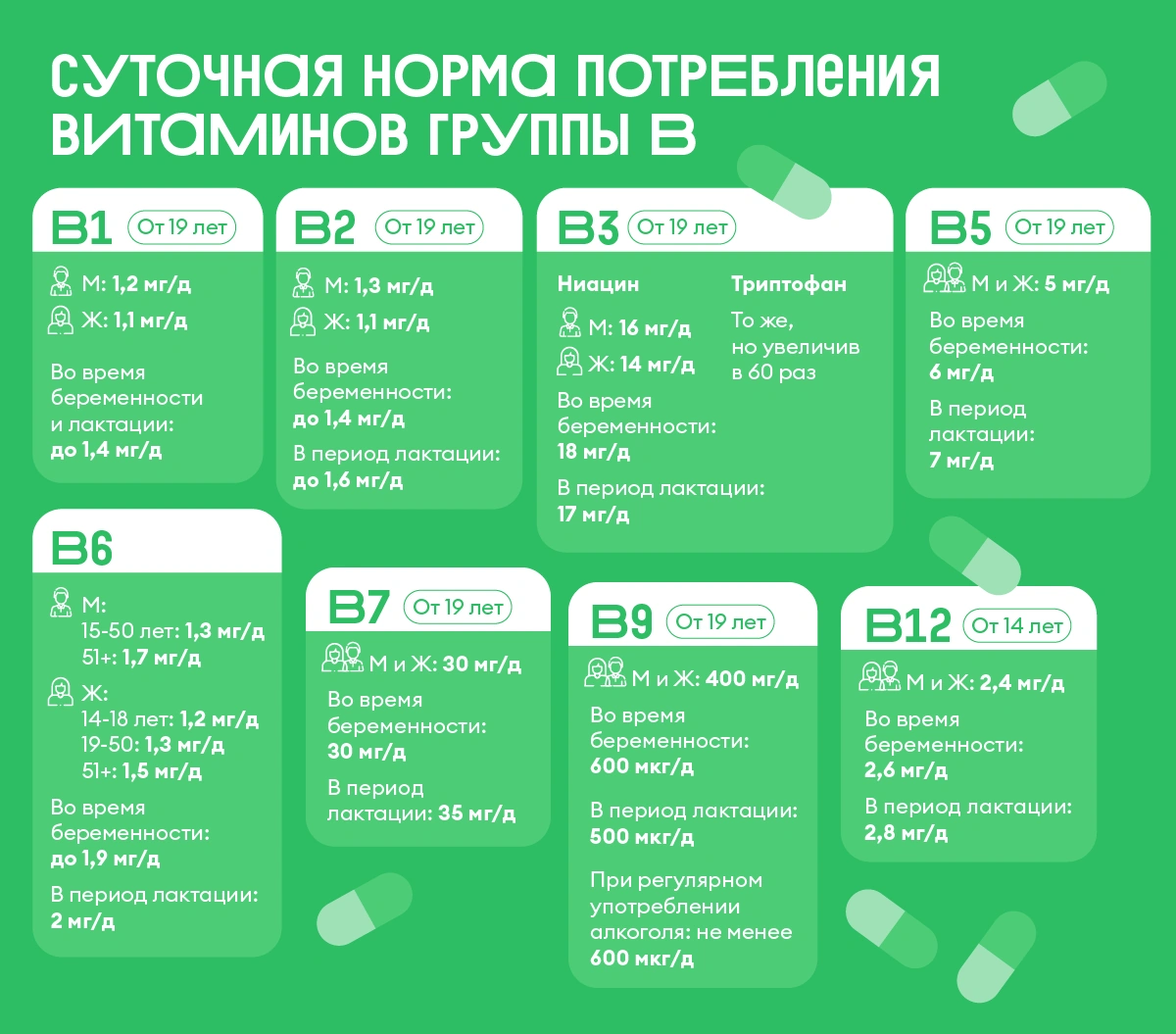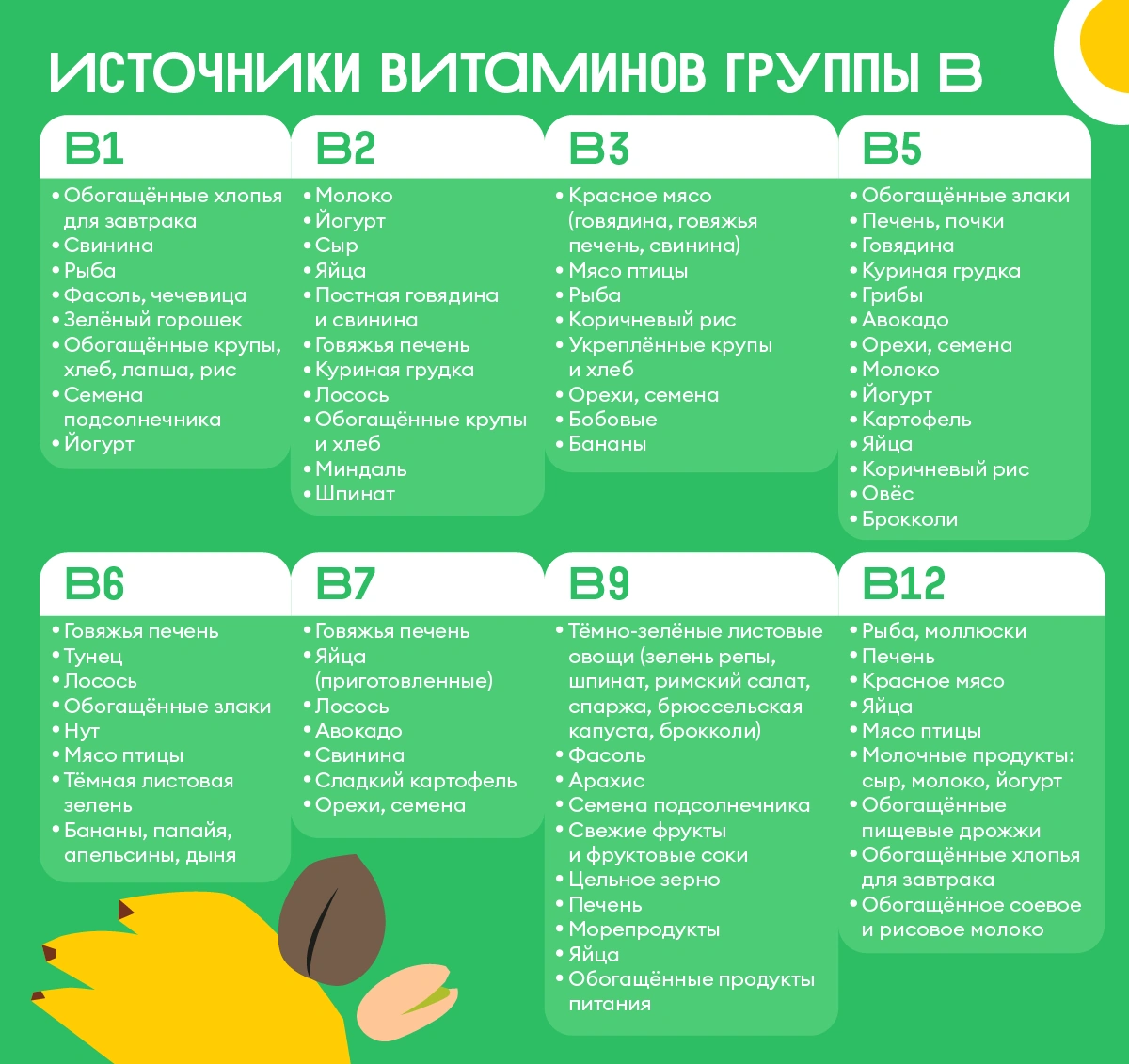 Источники витаминов группы В и суточная норма их потребления