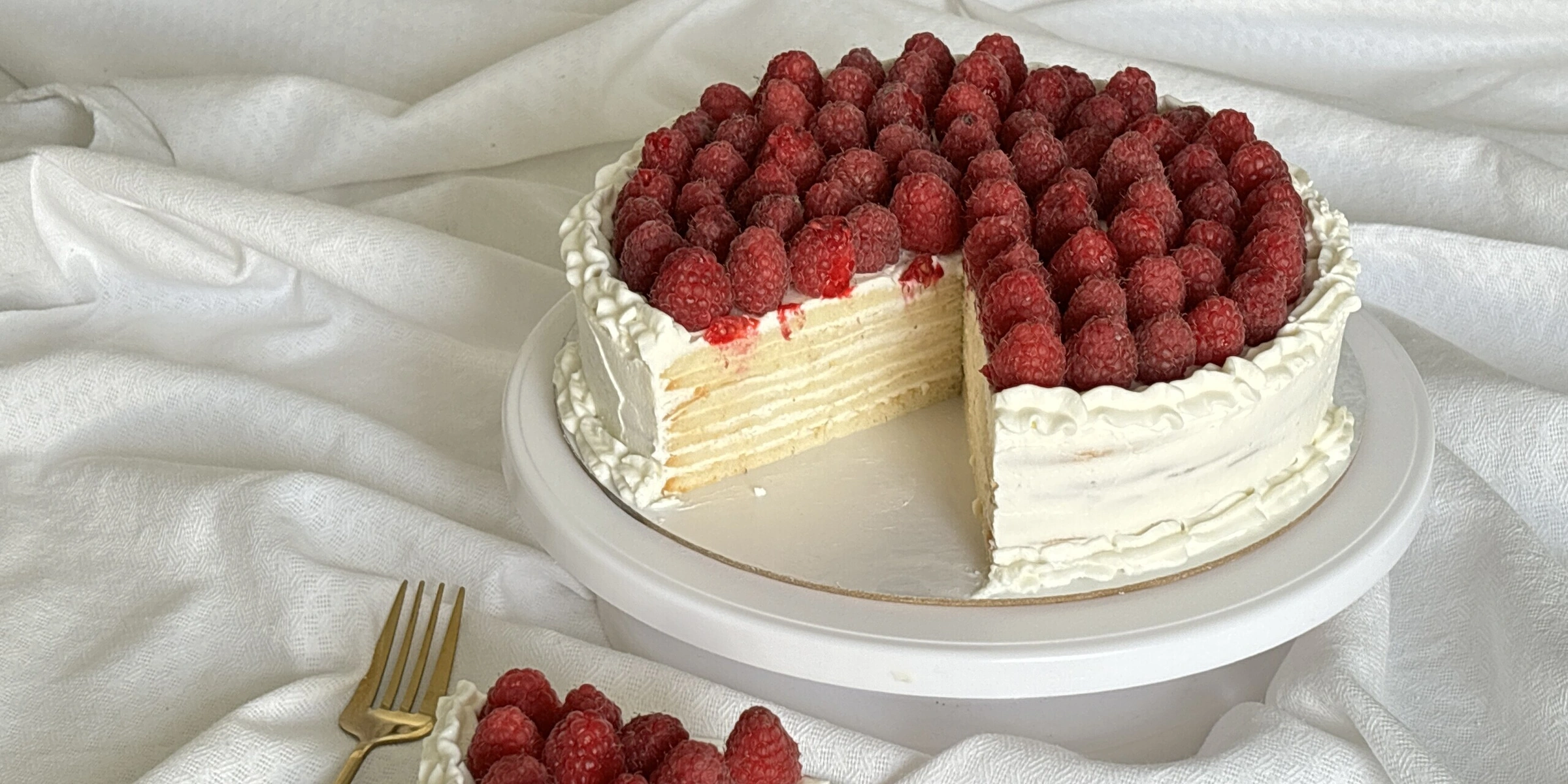 - По краю торта сделайте рюши и выложите малину по всей поверхности.