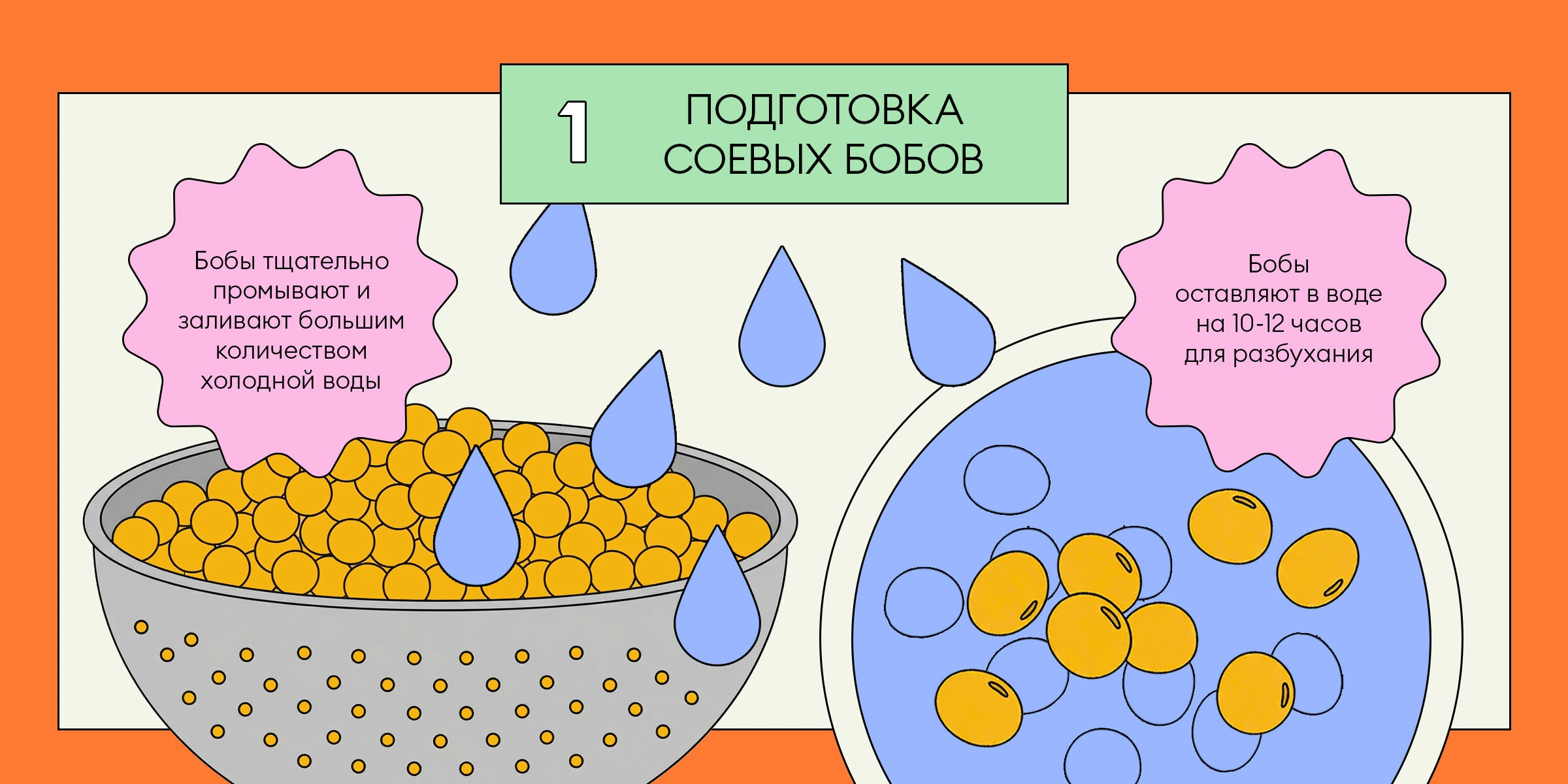 Сейчас производство тофу — это симбиоз древних традиций и современных технологий. Всё начинается с трёх ингредиентов: соевых бобов высшего качества, очищенной воды и загустителя (который называют коагулянтом) — солей магния (нигари) или кальция. Это аналоги сычужного фермента или кислоты в молочных сырах. Никаких консервантов и заквасок.