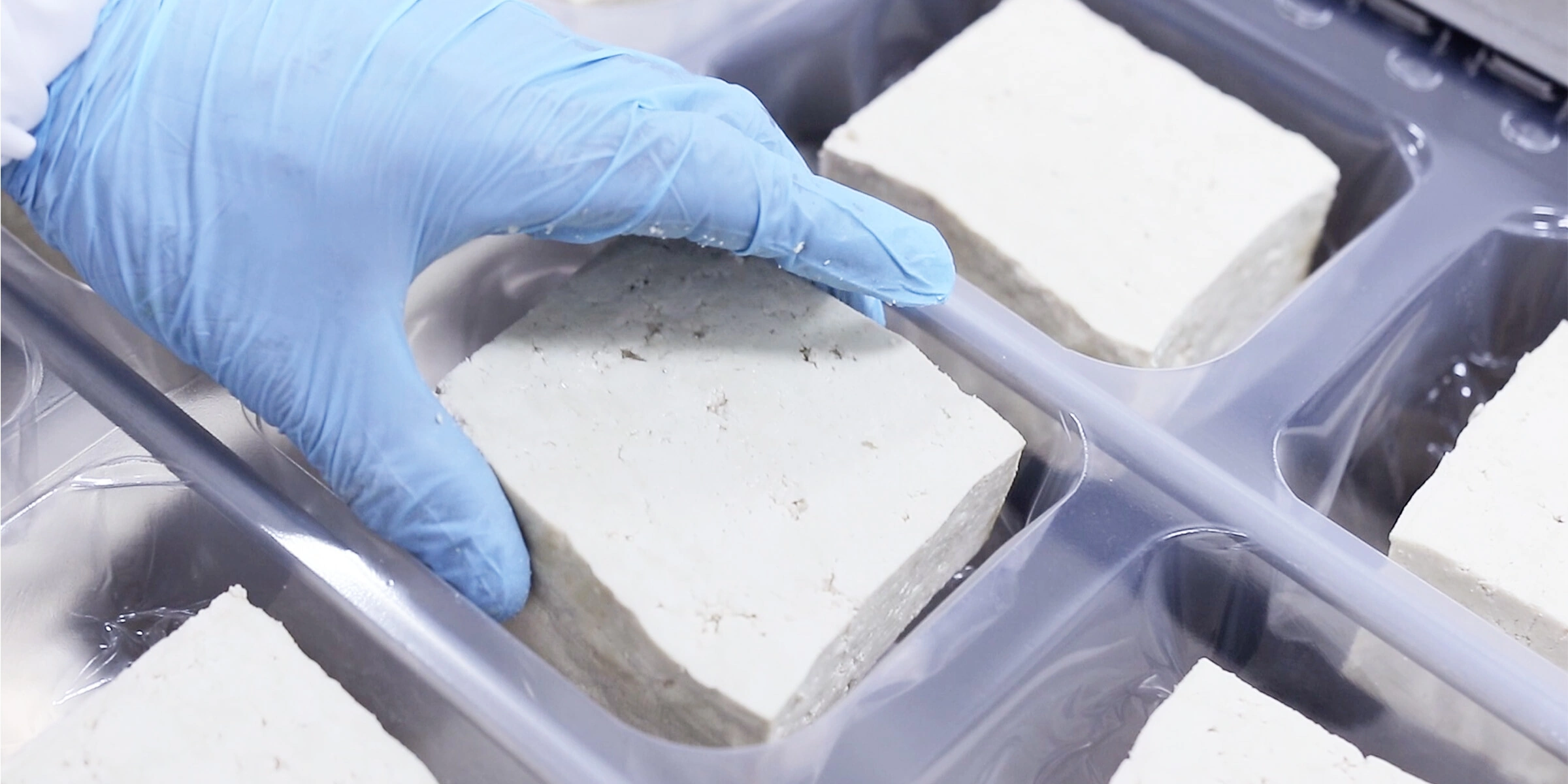Затем белковую массу выкладывают в формы и прессуют: чем выше давление, тем плотнее тофу. На этапе допрессования добавляют дополнительные ингредиенты (нори, грибы шиитаке, специи). Готовый продукт упаковывают в контейнеры с водой и пастеризуют при 80–90 °C — это увеличивает срок хранения без консервантов.