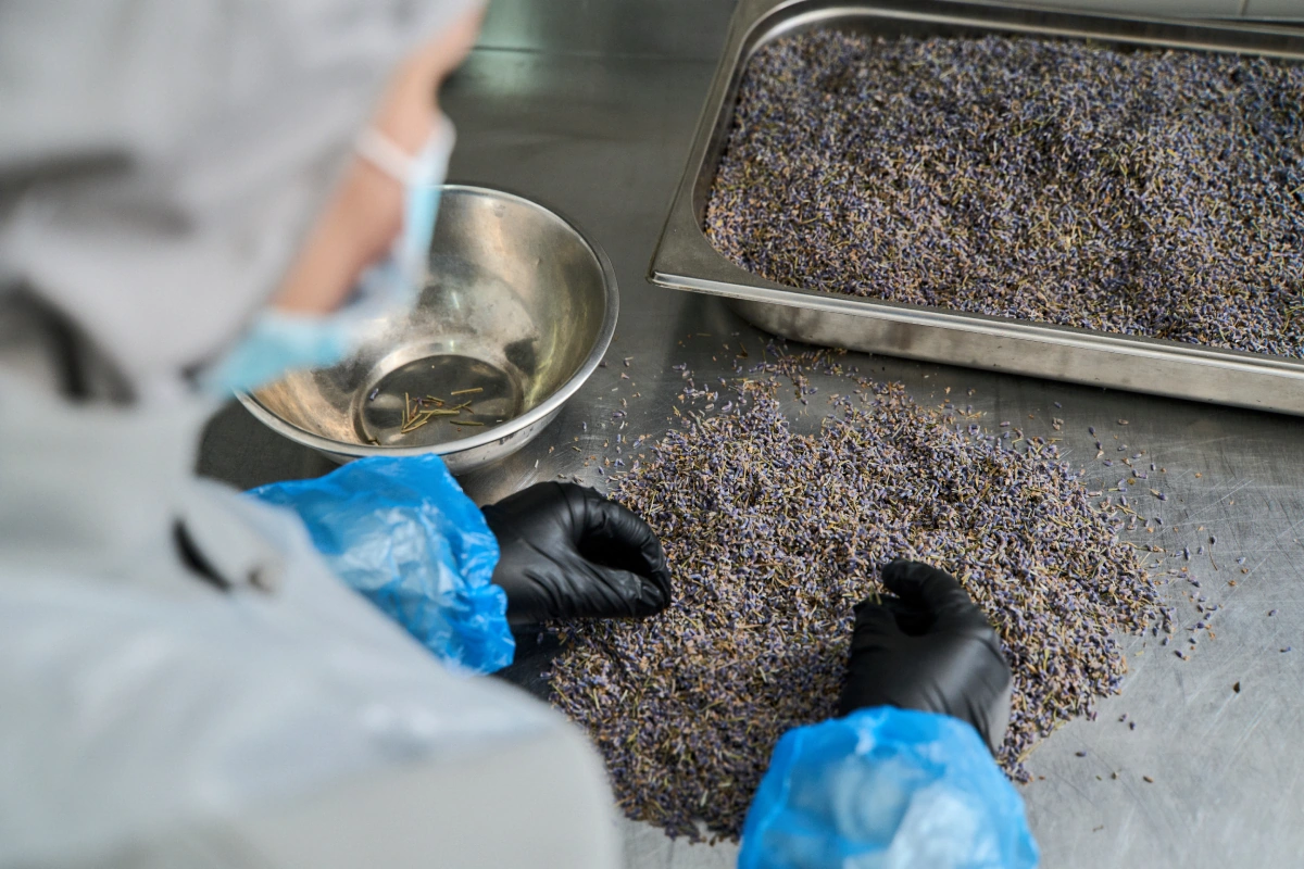 - сырьё, будь то фрукты или лаванда, обрабатывают;
