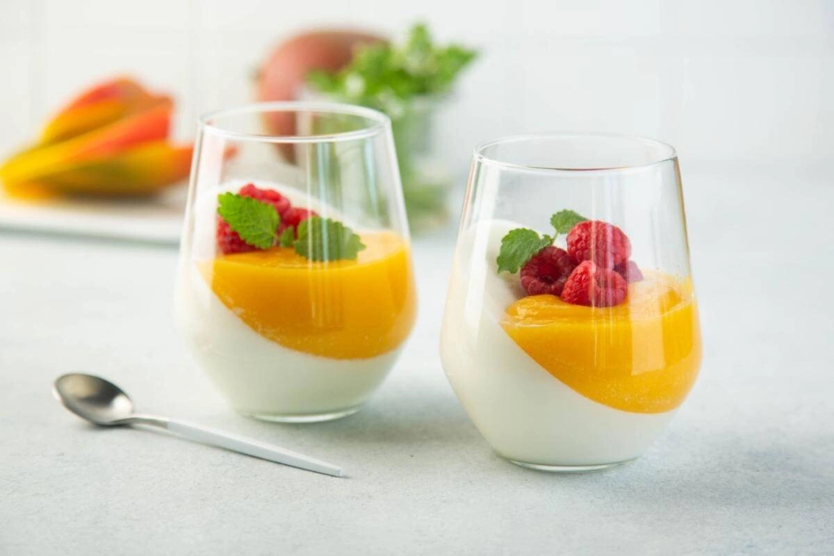 Нежная сливочная панна-котта и яркое освежающее манговое пюре отлично сочетаются, а малина добавляет летний оттенок вкусу. И кстати: в продаже появилось манго Доминикана — и, похоже, это новое манго Египет: тот же сорт и вкус, но из другой страны.