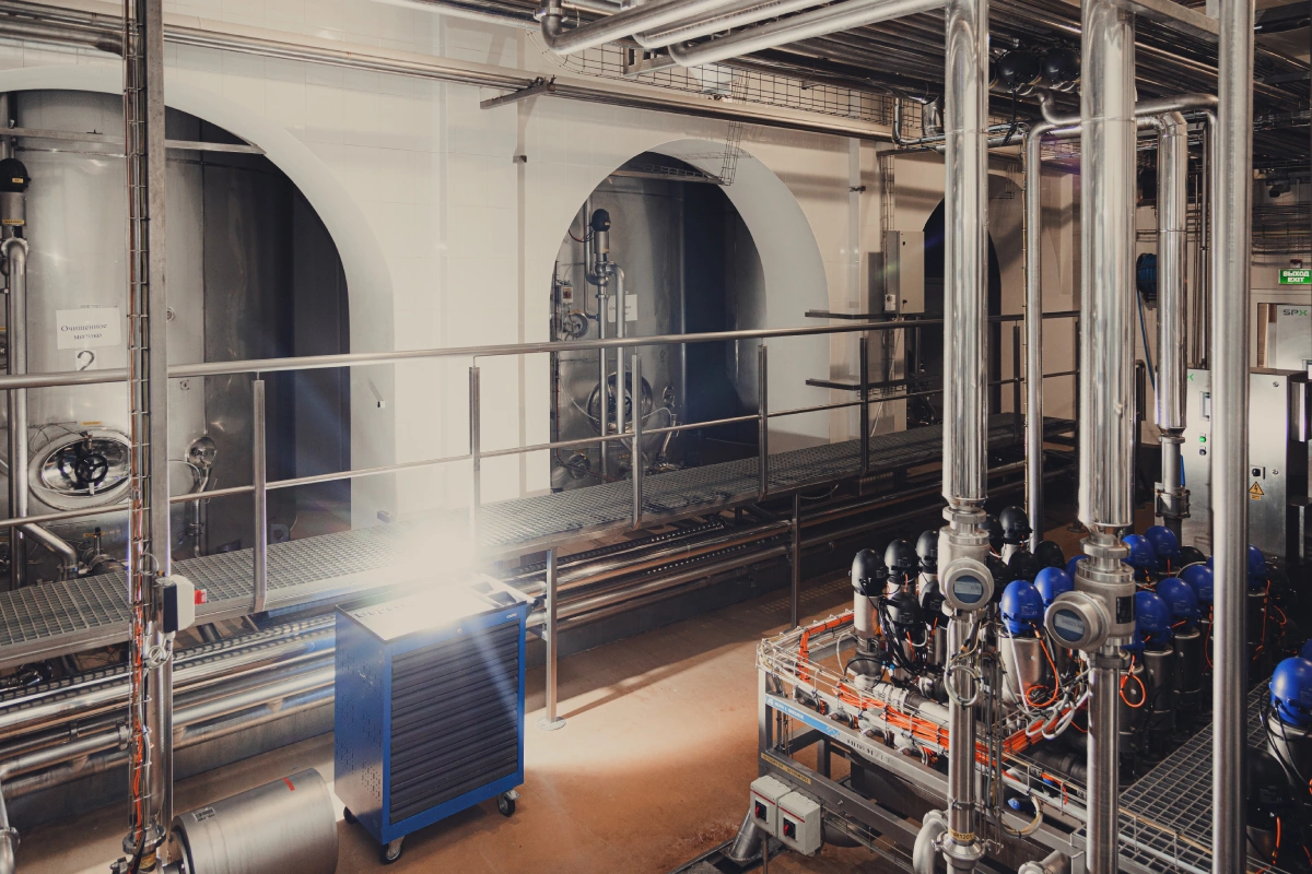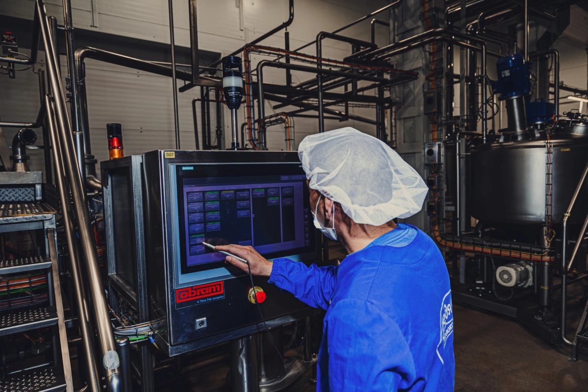 После того как молоко прошло проверку и этап приёмки, оно отправляется в молокоочистители. Там из него удаляют солому, траву и прочий мусор, который мог закрасться в продукт ещё в хозяйстве. Затем попадает в танки для очищенного сырья, а оттуда — на производство молока с определённой жирностью, творога, кефира или сметаны, например. Куда направить сырьё, решает оператор.
