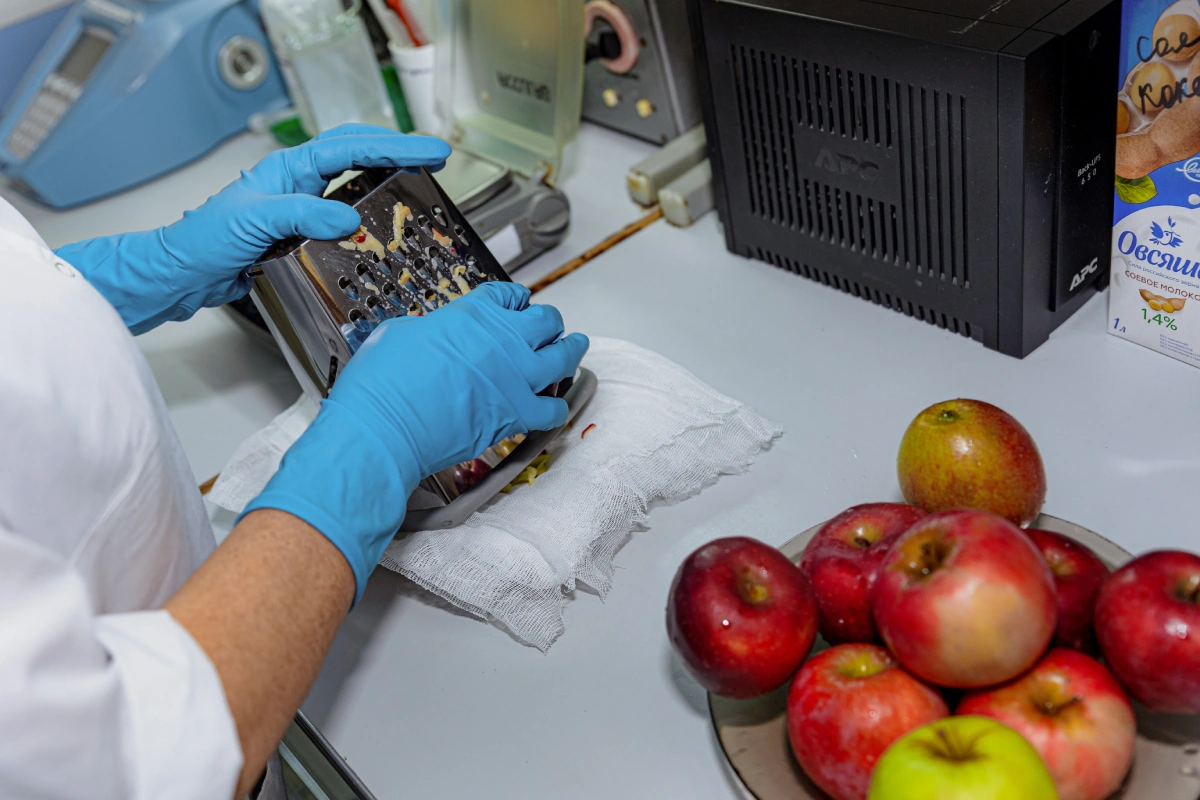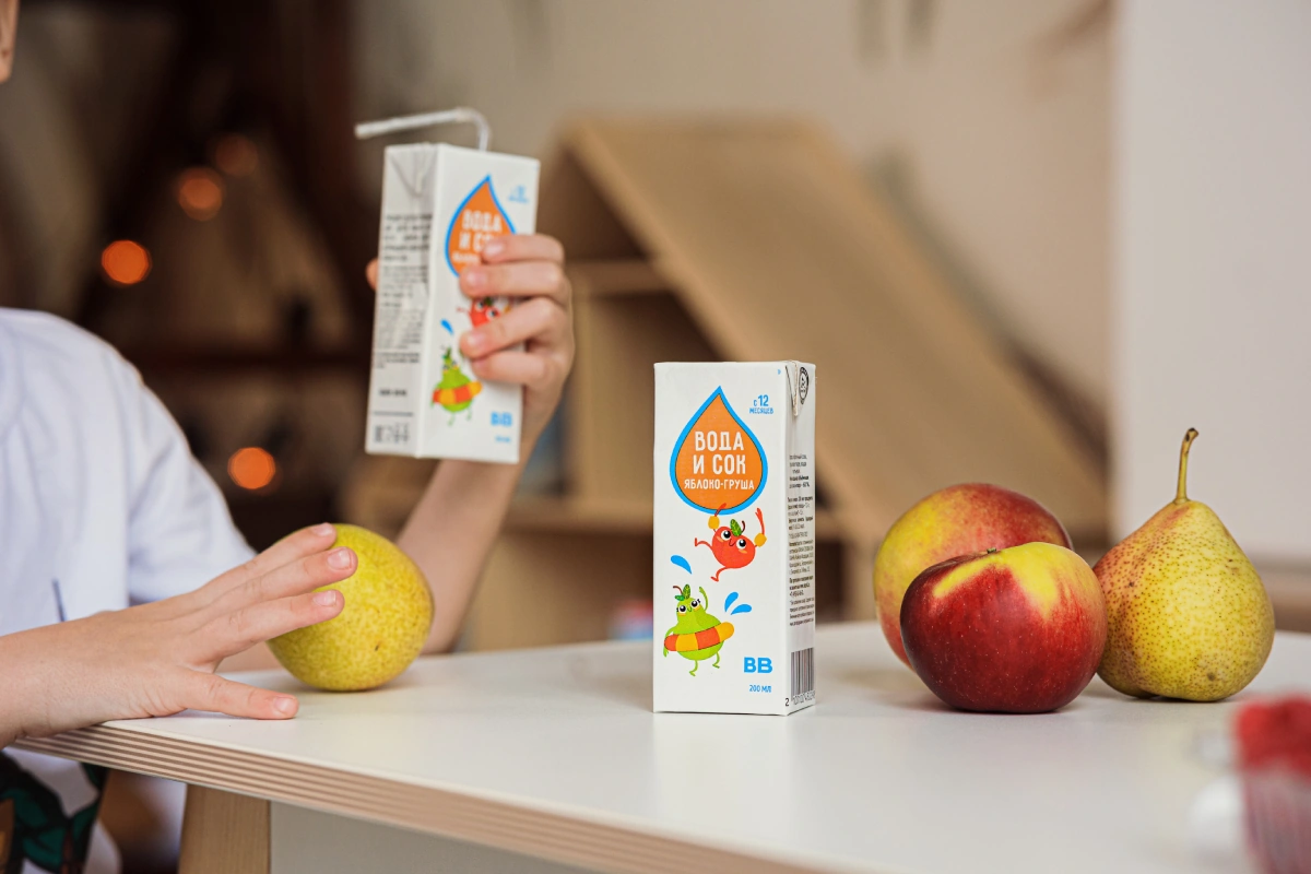 Единственное, что отличает их, — это формат упаковки: объём пакета сока для детского питания не должен превышать 350 миллилитров. Существует также особое требование к кислотности детских соков: она должна быть ниже, чем у соков для других возрастных групп. Поэтому при производстве соков для детского питания мы выбираем яблоки более сладких сортов и разливаем сок в 200-миллилитровую упаковку.