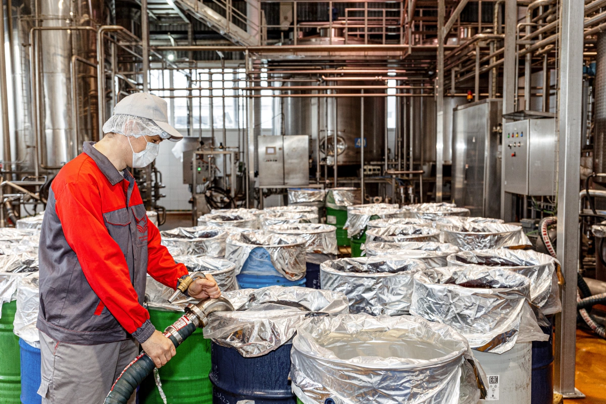 — Концентрированный сок — это заготовка для производства восстановленного сока. Его производят из сока прямого отжима, который уваривают при щадящей температуре в +65 градусов настолько, чтобы содержание сухих веществ составляло до 70 БРИКС .