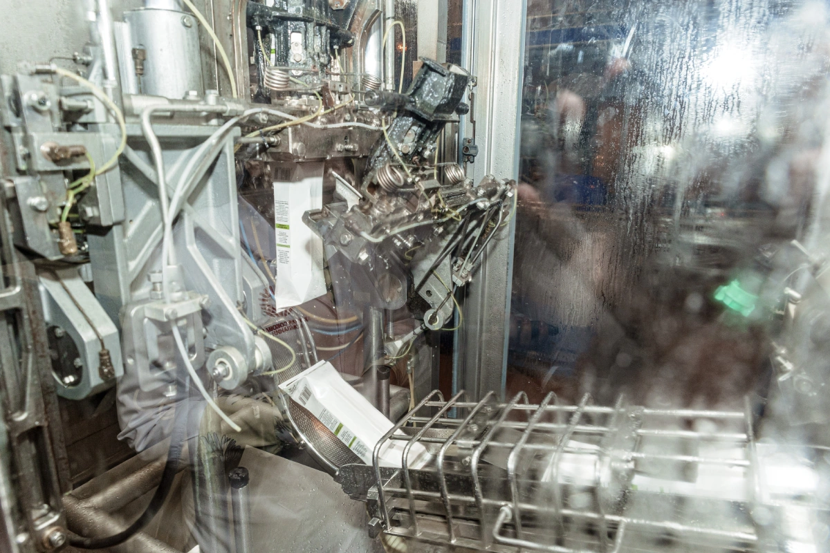 Очевидно, что яблоки, как и любые другие фрукты и овощи, — продукт сезонный. И некоторые покупатели задают нам вопрос: «Как возможен прямой отжим в январе или апреле?» Ответ кроется в асептическом розливе. Сок прямого отжима мы разливаем в бочки, внутрь которых помещаем асептический мешок. В таком виде напиток может храниться год. И как только получаем заказ от ВкусВилла на очередную партию, мы перекачиваем сок из бочек в купажную ёмкость, где смешиваем его, фильтруем, пастеризуем и разливаем в пакеты.