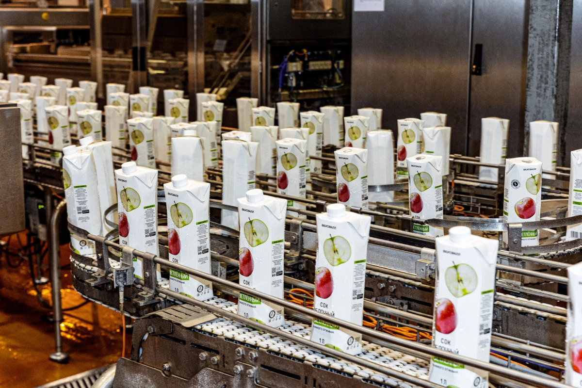 Если вкратце описывать процесс изготовления, к примеру, яблочного сока прямого отжима, то фрукты моют и перебирают, измельчают, подают на пресс, полученный сок фильтруют, пастеризуют и разливают. Всё. Можно сказать, что это практически тот же свежевыжатый сок, только в пакете. Мы готовим сок с минимальным технологическим участием и стараемся сохранить всё то, что дала нам природа, не привнося ничего лишнего.